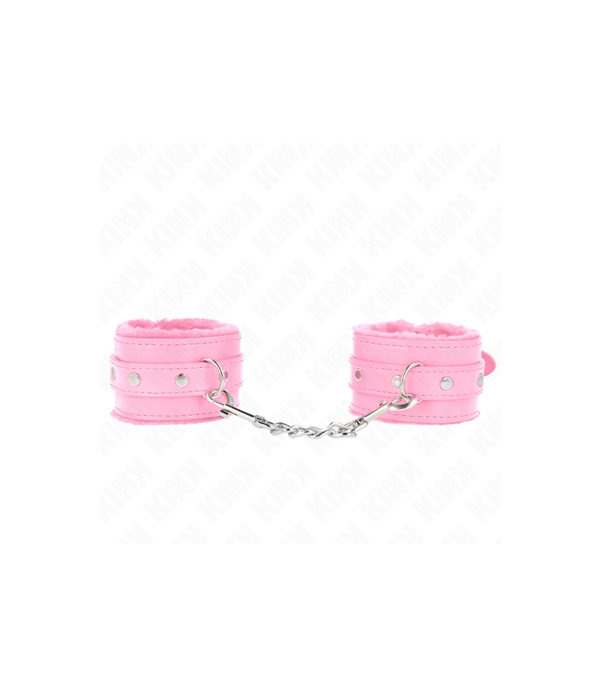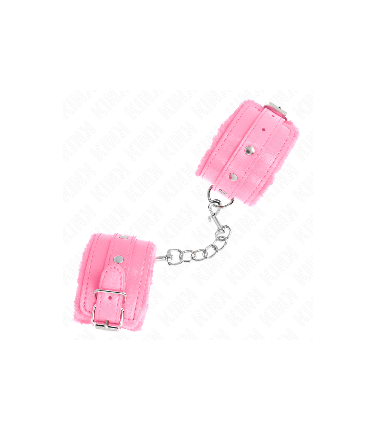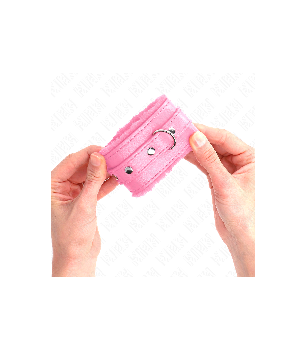 KINK - PREMIUM FUR LINED WRIST RESTRAINTS PINK WITH PINK BELT ADJUSTABLE 17-29 CM X 6 CM