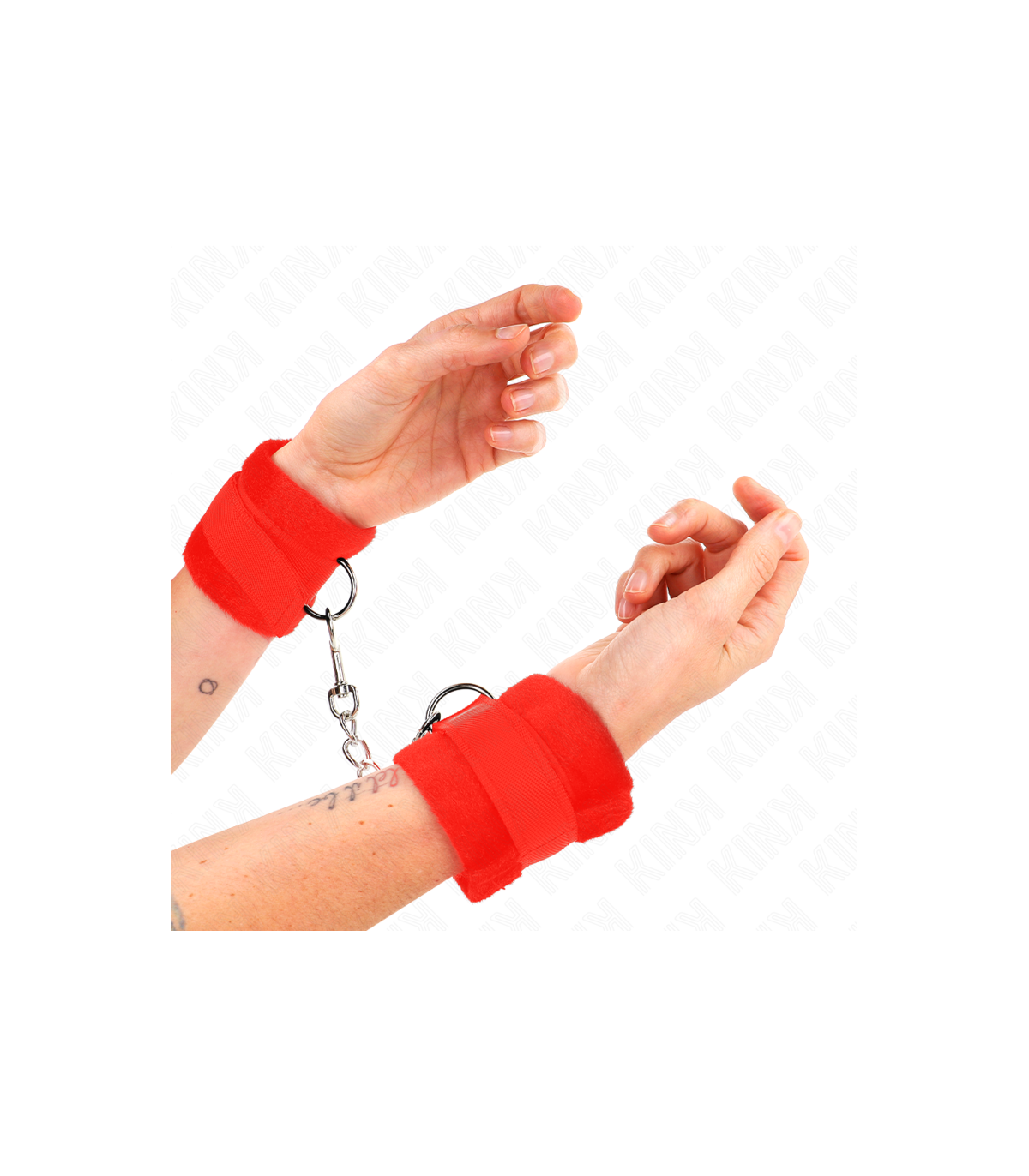KINK - BEGINNER FUR HAND CUFFS RED 30 X 7 CM