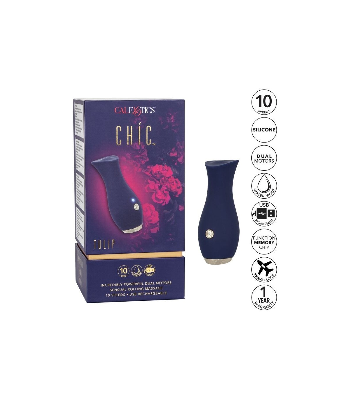 Cuando un motor no es suficiente, el Chíc Tulip lleva la precisión a la perfección. Disfruta de un poderoso masaje rodante en cualquier parte de tu cuerpo o úsalo en tu pareja para sensaciones de siguiente nivel. El Tulip también es resistente al agua, proporcionando un masaje húmedo y salvaje en cualquier lugar que desee.
