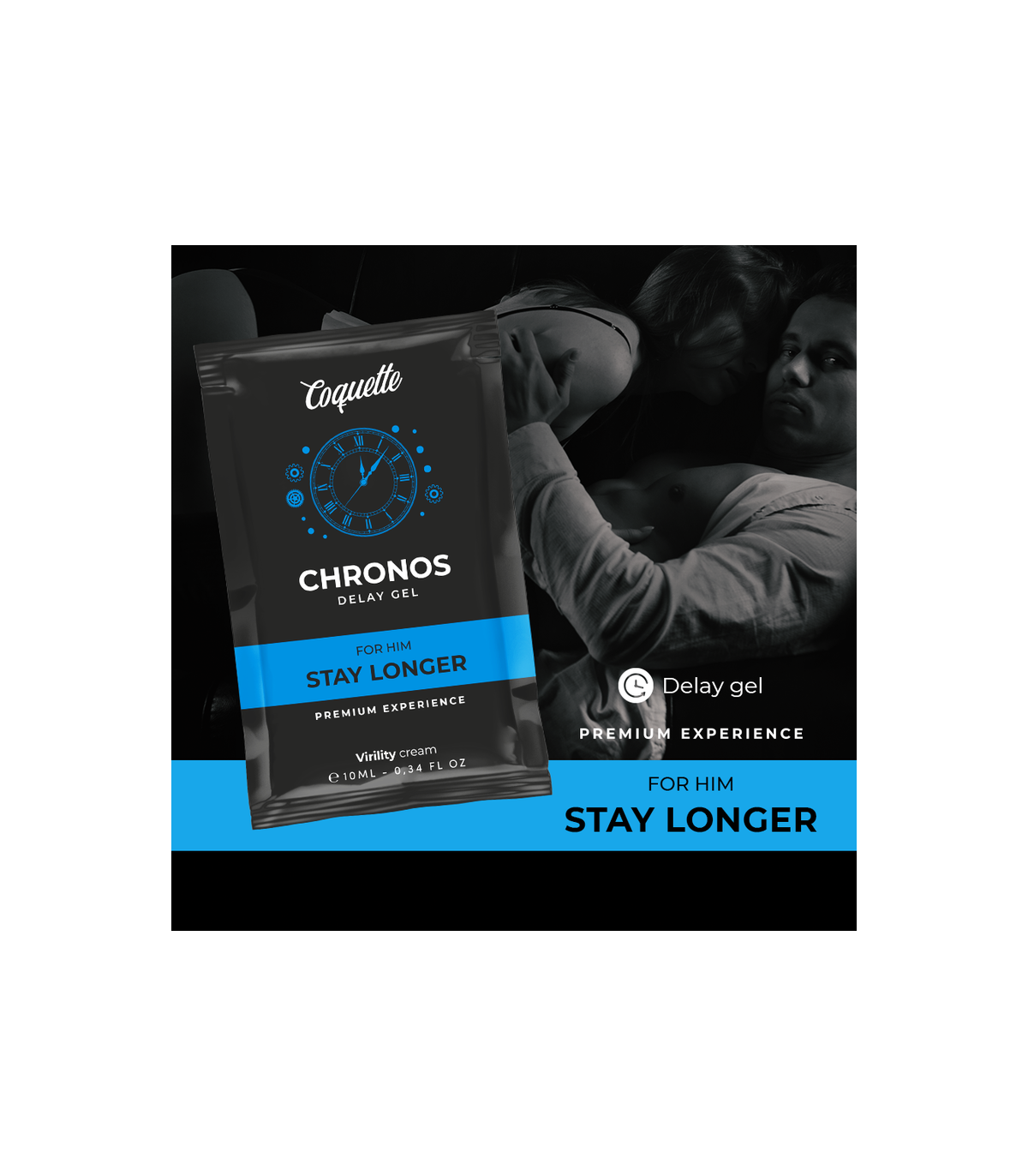 Chronos de Coquette Chic Desire es un gel pensado para personas con extrema sensibilidad en el pene. El exceso de sensibilidad provoca que las relaciones sexuales no tengan la duración necesaria para que ambas partes consigan un merecido orgasmo. Chronos prolonga las relaciones gracias a su efecto retardante.