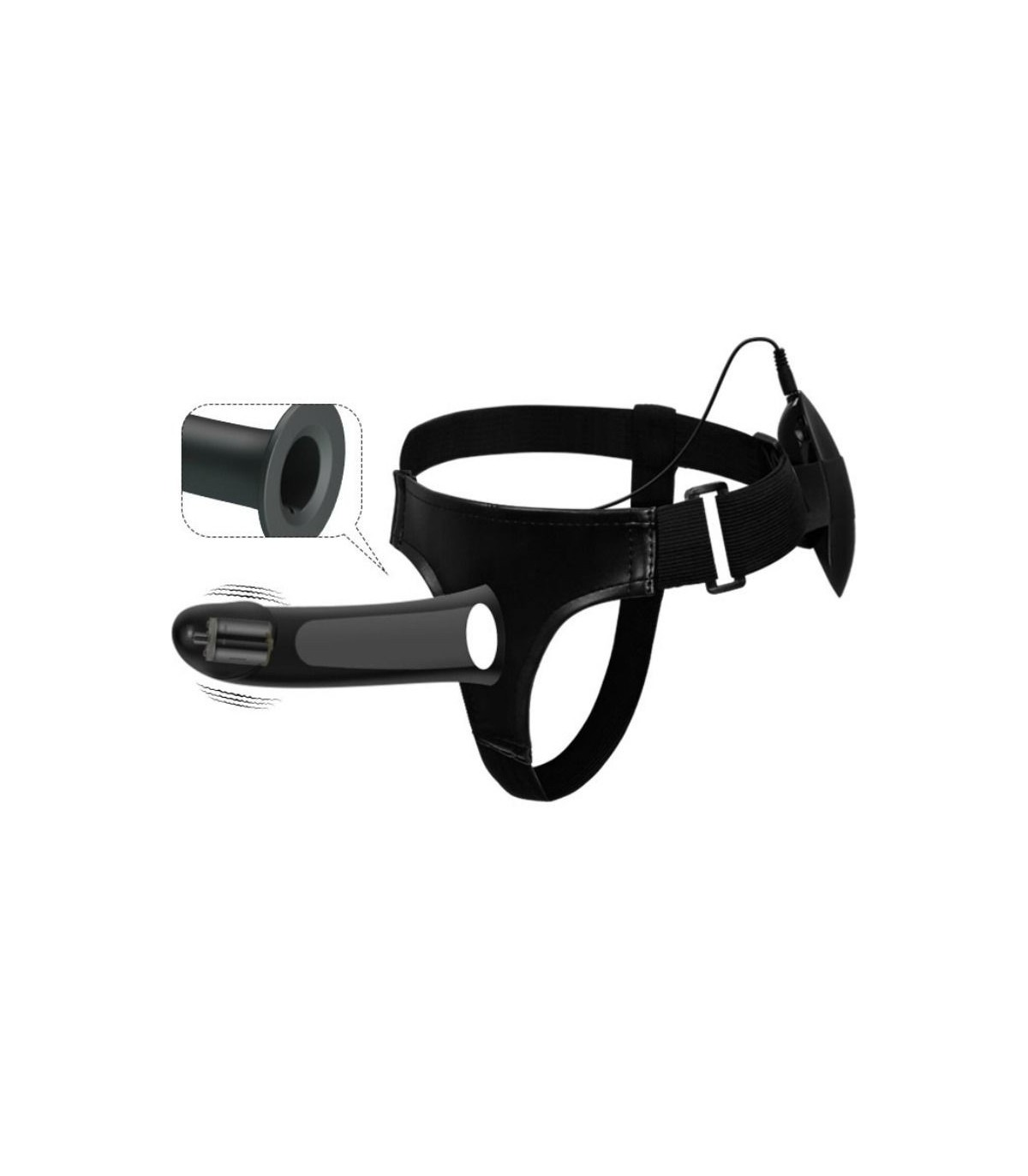 El Vito es un fabuloso strap on con dildo huevo y vibración. Incorpora un dildo hueco de 17.3 cm con un potente motor en la punta que proporciona intensas y placenteras vibraciones que se extienden por todo el eje y hará gozar a tu pareja. Su arnés además es regulable e incorpora un mando para que puedas elegir la intensidad de la vibración. El placer está asegurado.