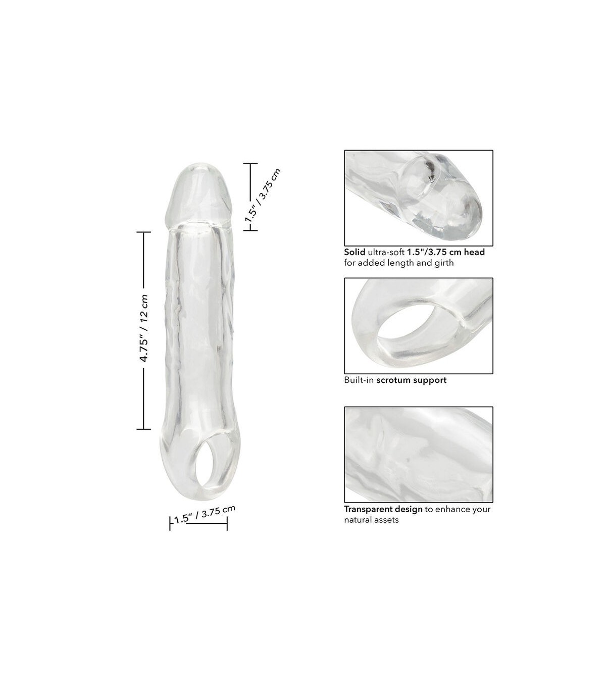 Experimenta un placer elevado con la Performance Maxx Clear Extension 6.5". Esta extensión aumenta tu tamaño y confianza, ofreciendo longitud y grosor adicionales. Con una cabeza sólida ultra suave de 1.5 pulgadas / 3.75 cm, proporciona una sensación realista, y el diseño transparente estimula visualmente, mostrando tus atributos naturales. El diseño hueco realista es cómodo, con una correa de escroto incorporada para estabilidad durante el uso. Fabricado con materiales seguros para el cuerpo, sin fragancias y libres de ftalatos, garantiza tranquilidad. Ya sea agregando emoción a encuentros íntimos o explorando nuevas sensaciones, la Performance Maxx Clear Extension 6.5" mejora las experiencias y ayuda a alcanzar nuevos niveles de placer.