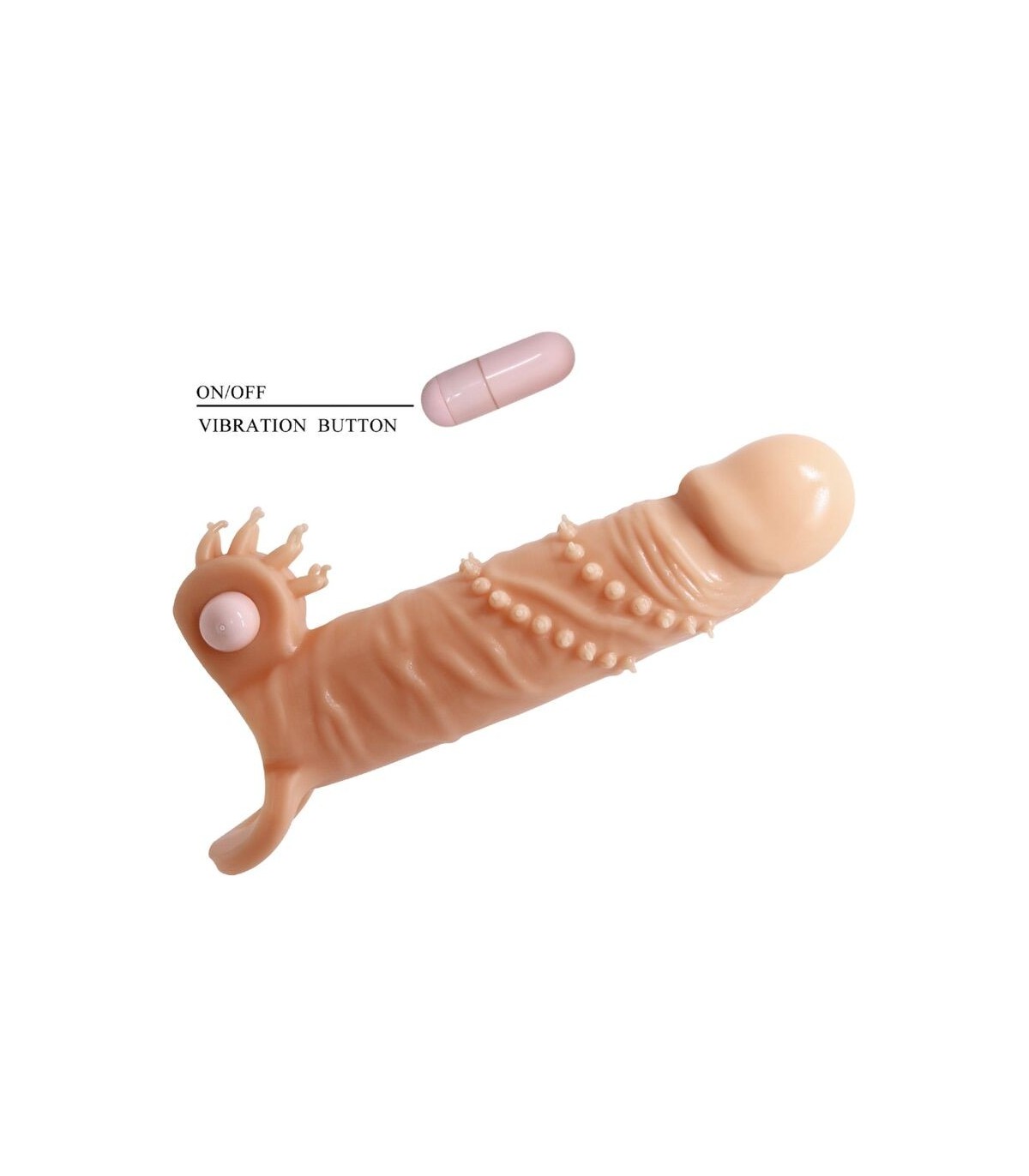 La mejor funda para el pene y extensión para una mayor longitud y un mejor rendimiento sexual Disfrute de las vibraciones y mejore el rendimiento con la funda vibradora para el pene Pretty Love. Esta funda para el pene que mejora la erección y promete placer, de 6,7 pulgadas de largo, está hecha de TPR suave y se fija en su lugar mediante un lazo de bola. Mantiene su erección más dura y duradera por más tiempo, incluye una bala vibradora para estimular a su pareja con cada movimiento. La bala está diseñada para estimular el clítoris con vibraciones que la impulsarán de un orgasmo al siguiente. Esta funda de extensión para el pene tiene una punta sólida para brindarle esa longitud adicional cuando la desee.