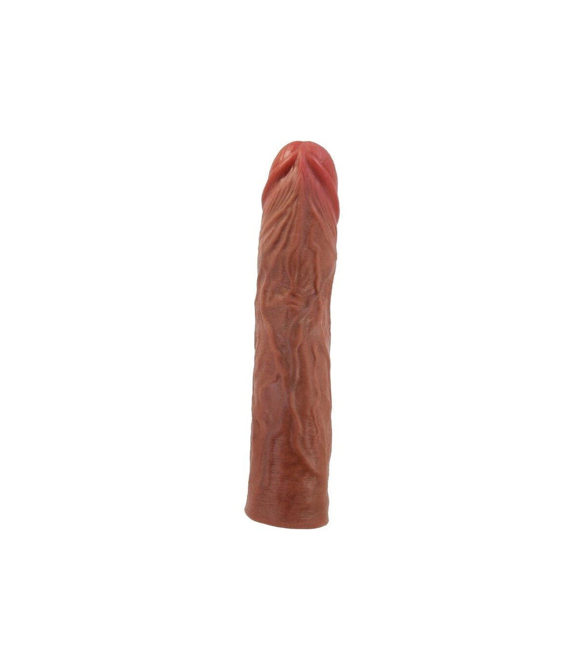Aumente el tamaño de su pene con esta funda para el pene de placer. Fabricada con material ultra realista para un placer realista. La superficie externa está texturizada con venas realistas y presenta una cabeza bulbosa para garantizar que su amante experimente sensaciones naturales. Un canal interno suave abraza su erección para un máximo contacto y estimulación.