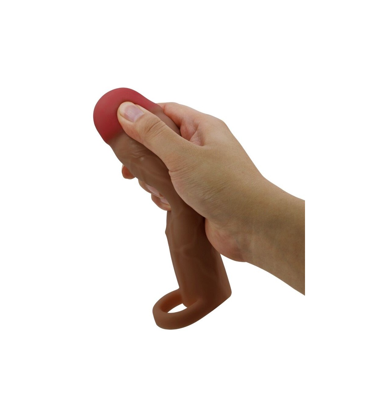 Aumente el tamaño de su pene con el extensor de pene de placer. Fabricado con material ultra realista para un placer ultra realista, esta funda le brinda 2 pulgadas adicionales de longitud y un 35 % de circunferencia. La superficie externa está texturizada con venas realistas y presenta una cabeza bulbosa para garantizar que su amante experimente sensaciones naturales. Un canal interno suave abraza su erección para un contacto y estimulación máximos.