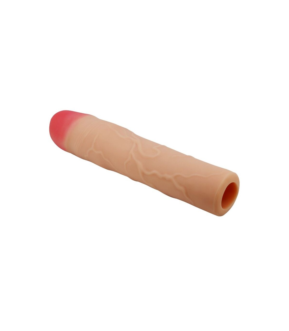 Aumente el tamaño de su pene con el extensor de pene de placer. Hecha de material ultra realista para un placer ultra realista, esta funda le brinda 3 pulgadas adicionales de largo, 35 % de circunferencia.