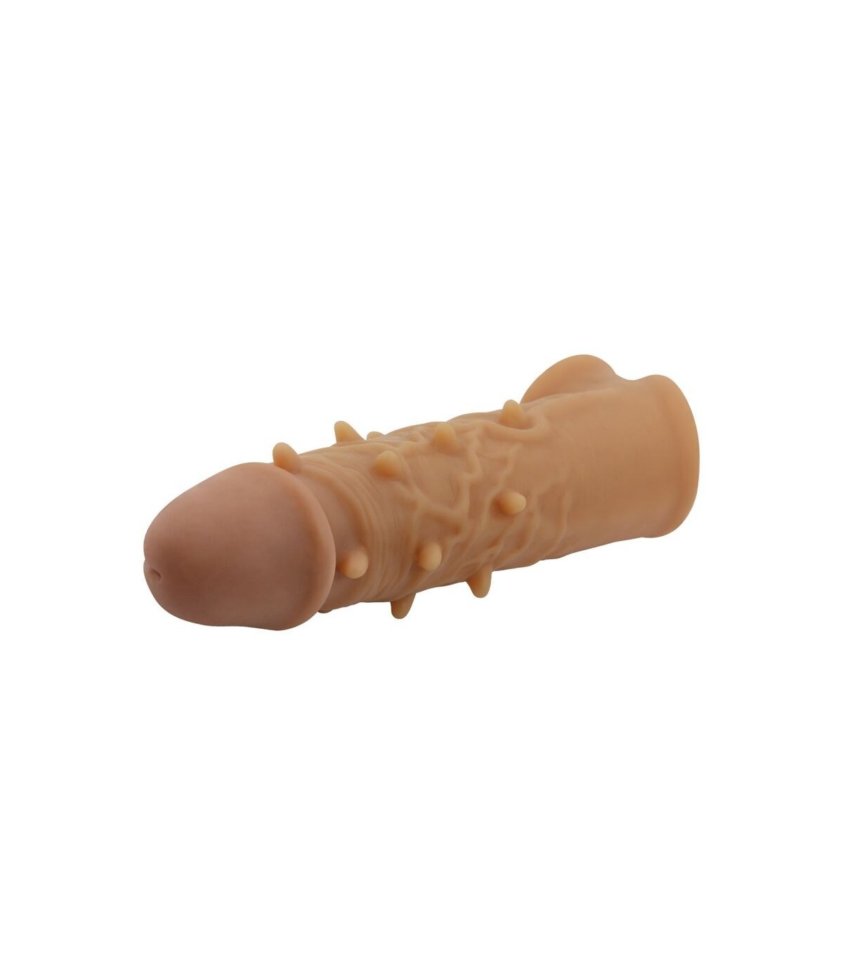 La funda está hecha de silicona líquida similar a la piel para esa sensación ultrarrealista y está esculpida por expertos para tener un aspecto realista. Esta funda de extensión de pene de sensación natural se ajusta a su erección con un eje cómodo y hueco y un anillo para testículos para un ajuste seguro que no se moverá durante el juego. Las gruesas paredes de las mangas y los nudos elevados les ofrecen aún más estimulación con cada empuje.