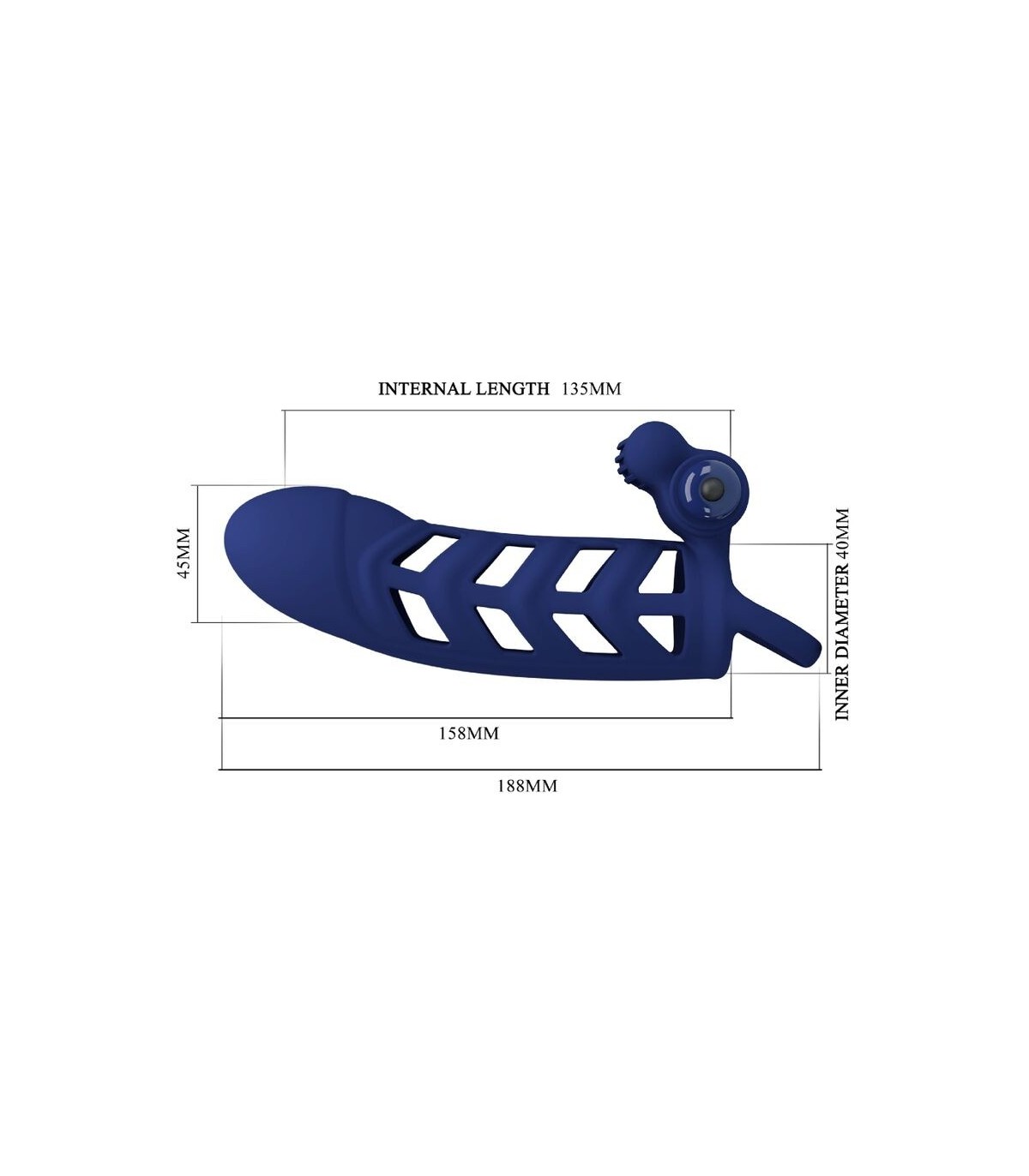 Mejora el rendimiento con esta funda de silicona para pene vibratorio. Esta funda para el pene que mejora la erección y promete placer está hecha de silicona suave y se fija en su lugar mediante un lazo de bola. Llévala a la felicidad climática activando la parte de vibración para estimular directamente su clítoris. La funda elástica abraza tu pene para una erección más fuerte y duradera, ¡dándote más momentos felices!