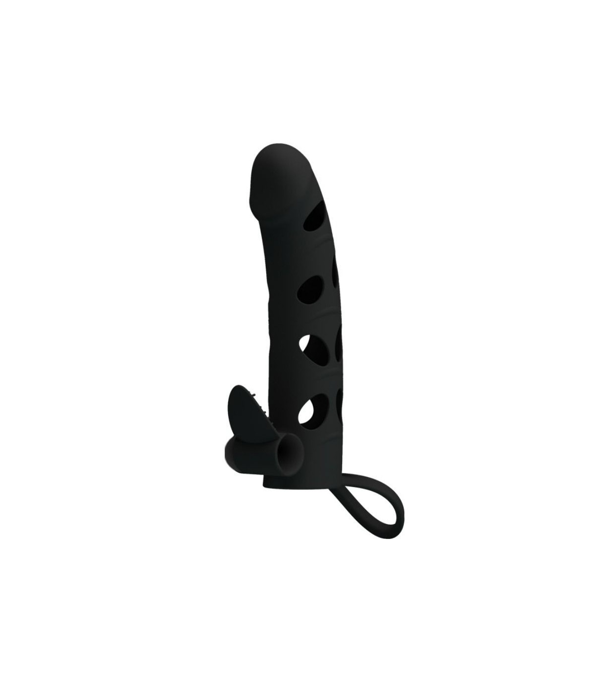 Porque el tamaño si importa, ahora Pretty Love trae esta funda de silicona para que puedas alcanzar hasta los 15.2 cm. Está hecho con silicona de primera calidad, resistente al agua para que puedas usarla en la ducha o spa, con anillo de sujeción en los testículos e incorpora una bala vibradora y texturas a la altura del clítoris con lo que aumentareis el placer en pareja. Además de ganar unos centímetros en longitud y grosor de más, es perfecto para personas con eyaculación precoz o disfunción erectil para poder seguir disfrutando.