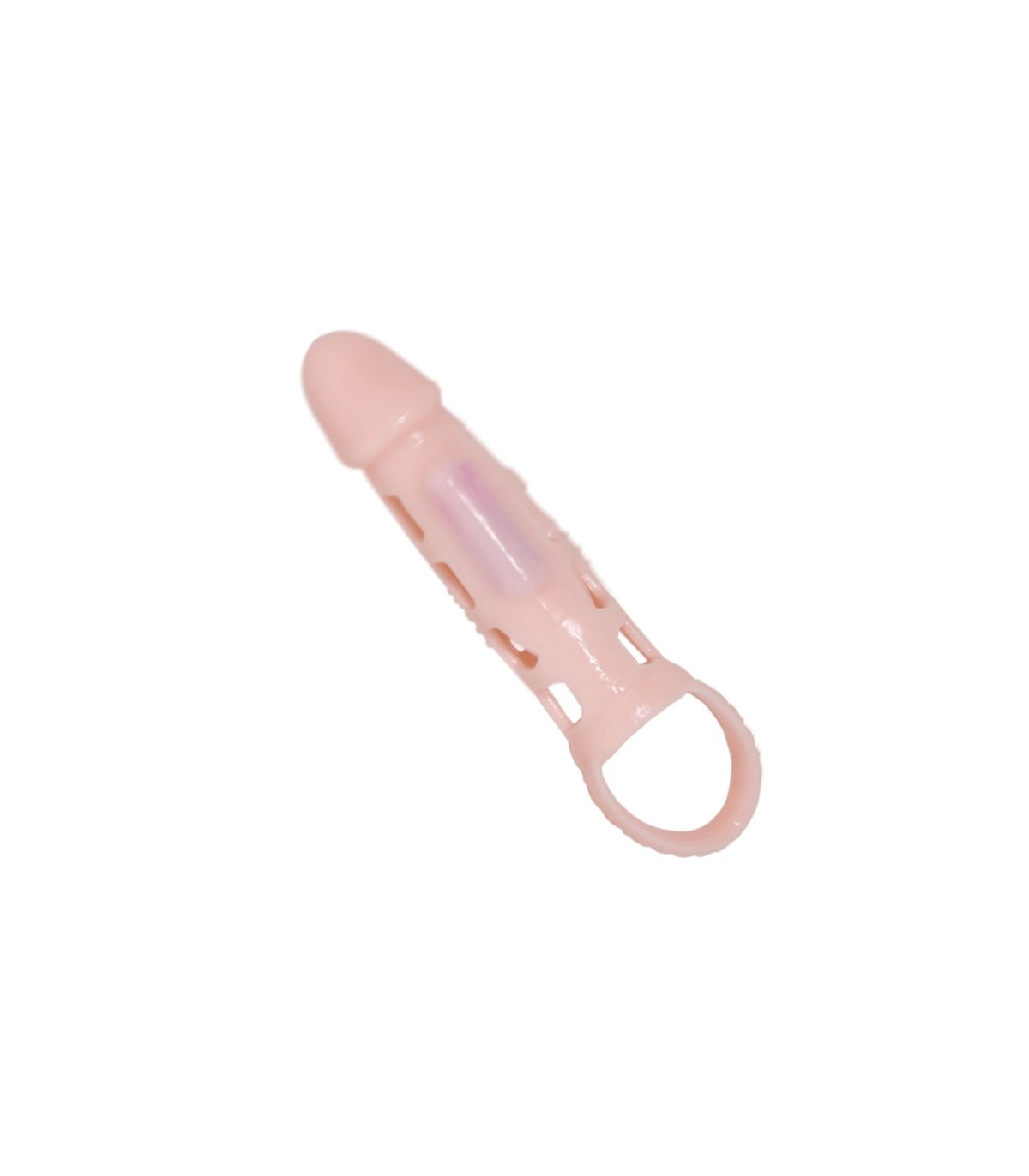 Funda extensora de pene con bala incorporada y strap para los testiculos para que aumente tanto en grosor como en longitud y así aumentar el placer de ambos durante las relaciones. Tiene un diseño realístico y funcional ya que los relieves de los contornos sirve como estimulante para tu pareja y está fabricado en TPR de alta calidad.