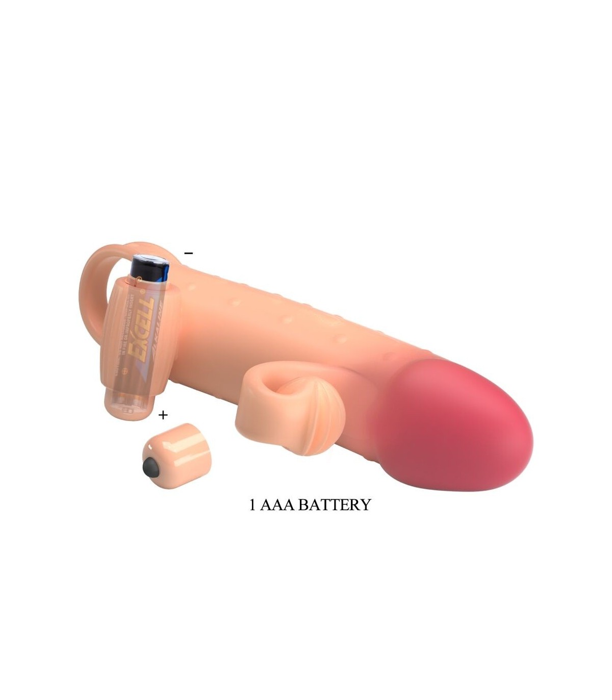 La funda está hecha de TPE similar a la piel para una sensación ultra realista y está esculpida por expertos para tener un aspecto realista. Esta funda de extensión de pene de sensación natural se ajusta sobre su erección con un eje hueco cómodo y un anillo de testículo para un ajuste seguro que no se moverá durante el juego.