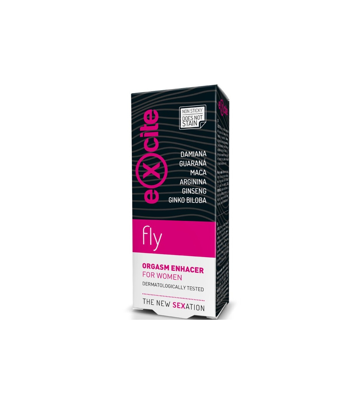 EXCITE FLY es el inimitable potenciador del orgasmo que combina extractos vegetales de reconocidas propiedades vigorizantes con una acción hiperhemiante enrojecimiento de la piel; notará una agradable sensación de calor, frío u hormigueo que aumentará la sensibilidad en sus zonas íntimas, ideal para estimular y prolongar la relación de la pareja.