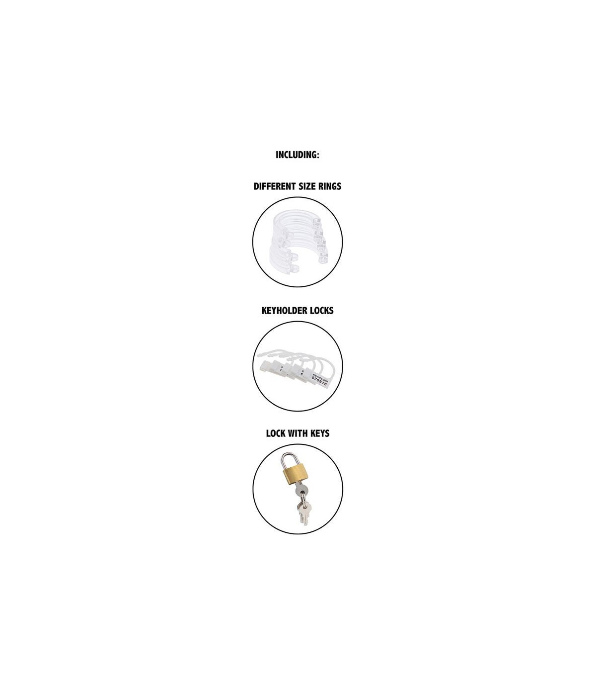 Su mecanismo de bloqueo seguro garantiza seguridad y discreción, mientras que el ajuste ajustable se adapta a la mayoría de los tamaños de pene. El diseño elegante permite un uso discreto bajo la ropa y durante las rutinas diarias. Fabricado en acrílico duradero, garantiza comodidad premium y uso durante todo el día.