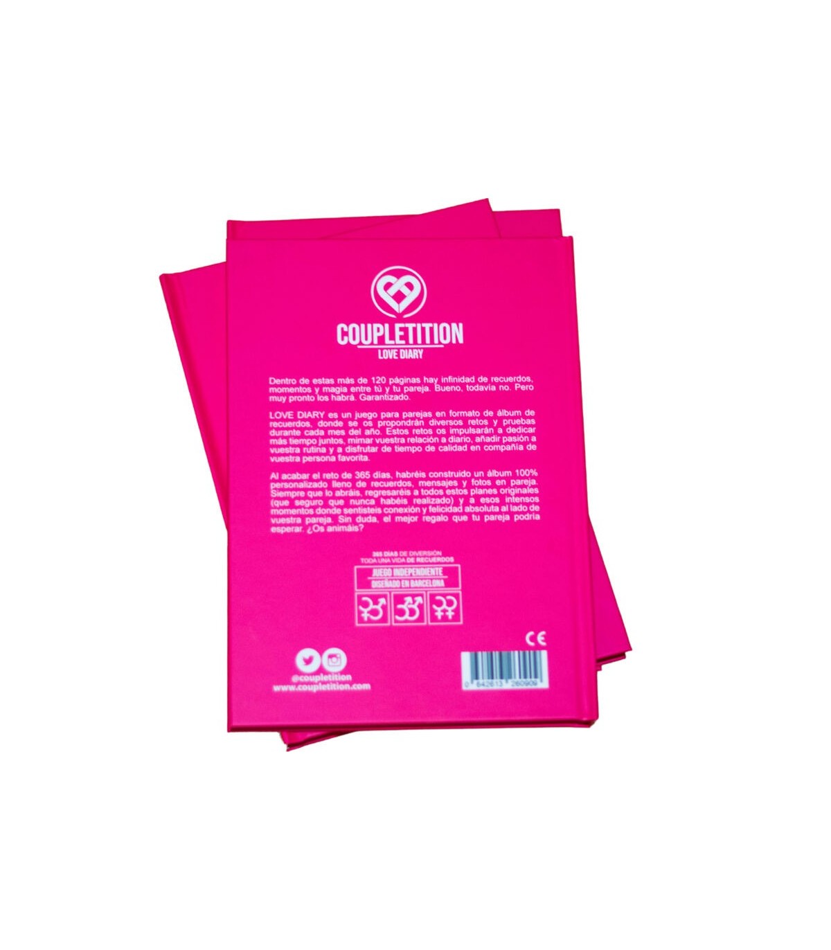 LOVE DIARY es, simplemente, el mejor regalo que puedes hacerte a ti mismo y a tu pareja. Contiene todo un año de retos, juegos, actividades y citas para completar en vuestro tiempo libre, llenar vuestra rutina de desafíos y, finalmente, acumular todos esos momentos vividos en un precioso e imborrable álbum de recuerdos. LOVE DIARY es ese pequeño tesoro que revisaréis miles de veces cada invierno, tapados con una manta y con una sonrisa enorme de oreja a oreja mientras recordáis todos esos momentos vividos juntos.