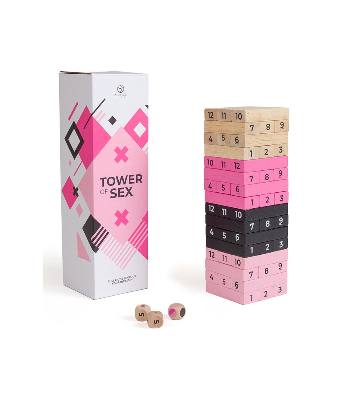 Tower of sex es el juego en el que podéis jugar de dos divertidas formas. Lanzad los dados y retirad las piezas de madera con mucho cuidado de no derribar la torre mientras disfrutáis realizando las pruebas picantes que encontraréis en cada pieza.