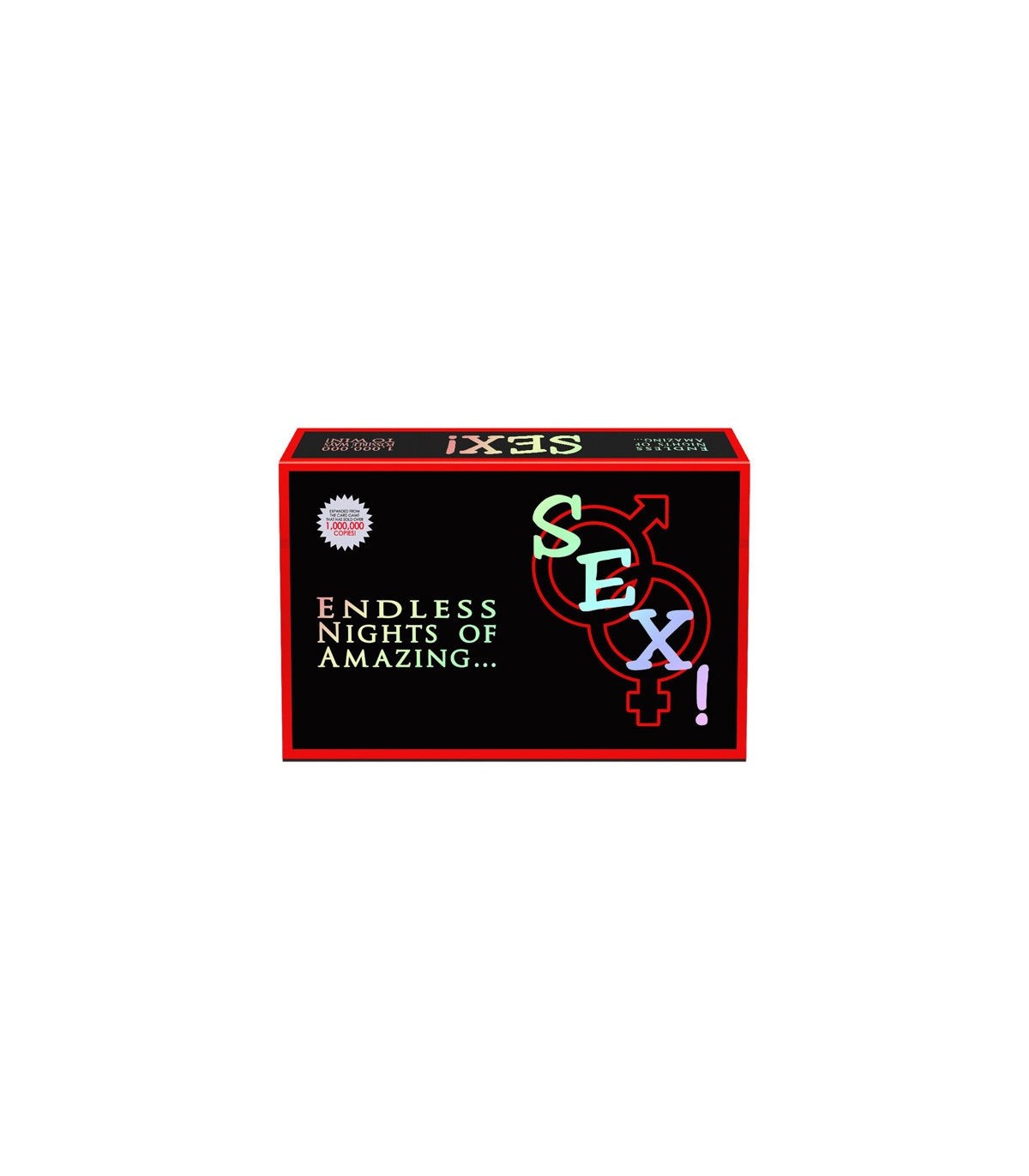 Incluye el tablero, 35 cartas de preguntas "Para él", 35 cartas de preguntas "Para ella", 60 cartas de Sex!, 3 dados, 2 fichas de jugador.