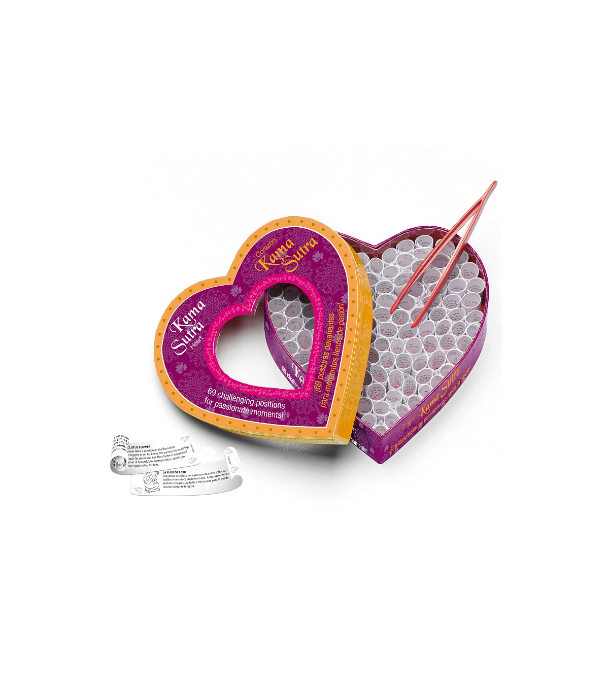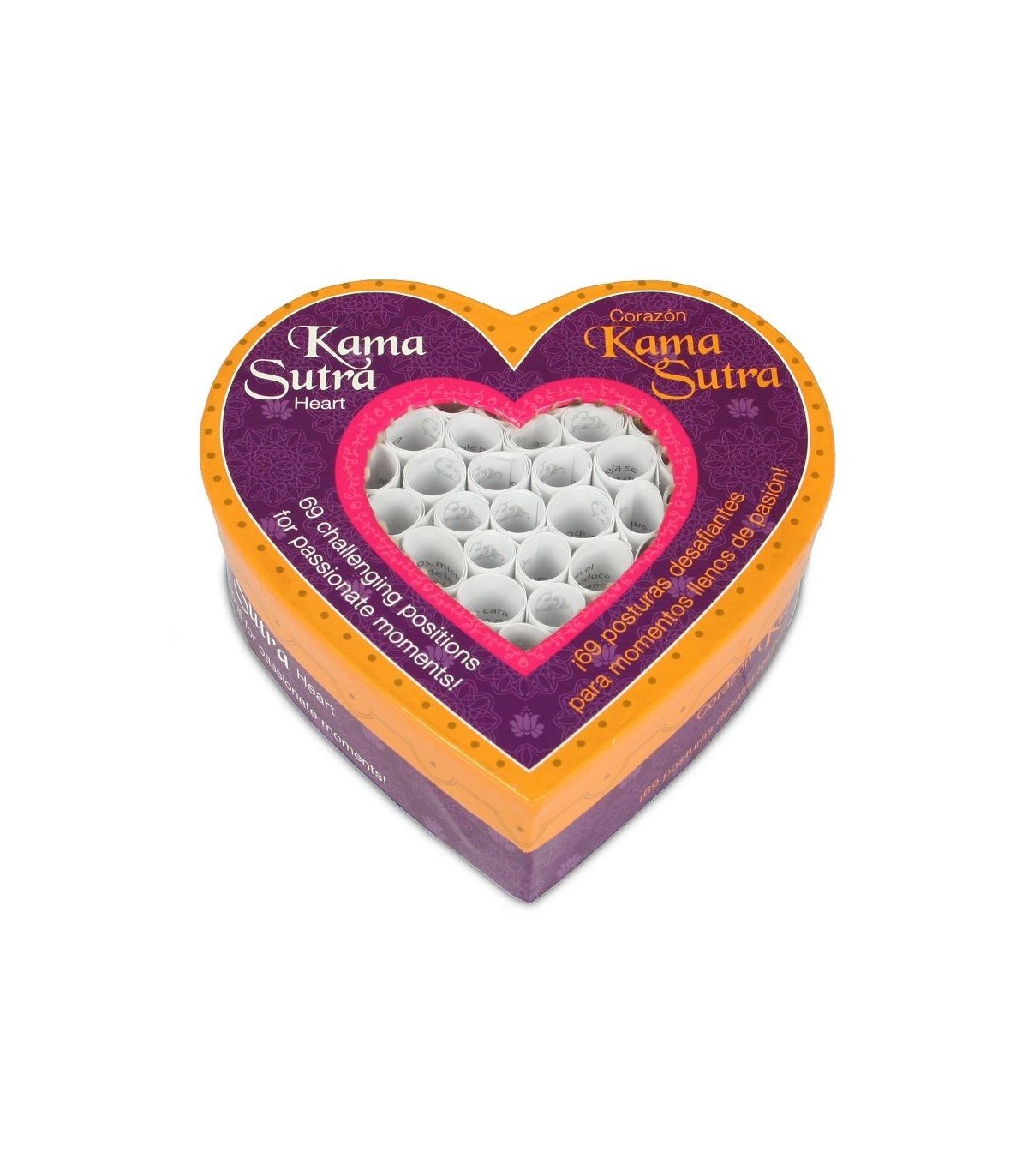 El Corazón Kama Sutra contiene 69 posturas la mayoría de las cuales proceden del milenario Kama Sutra de origen indio; la doctrina oriental del amor. Importante es el respeto mútuo. Descubrid de manera lúdica qué posturas os van mejor.