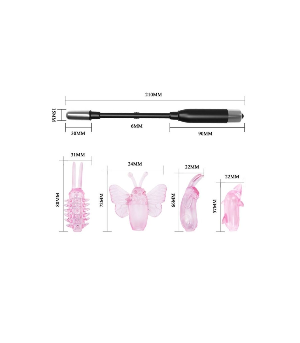 Conecta uno de los 4 cabezales al vibrador de varilla flexible y prueba las múltiples velocidades de vibración para obtener una estimulación intensa y precisa. Con una cabeza separada y un rodillo de masaje ideal para la estimulación del clítoris, el punto G y la próstata, todos los accesorios son lo suficientemente versátiles para ser utilizados como lo desees. Sus 10cm de largo son insertables, lo que facilita su uso y el cuello es flexible para un posicionamiento preciso.