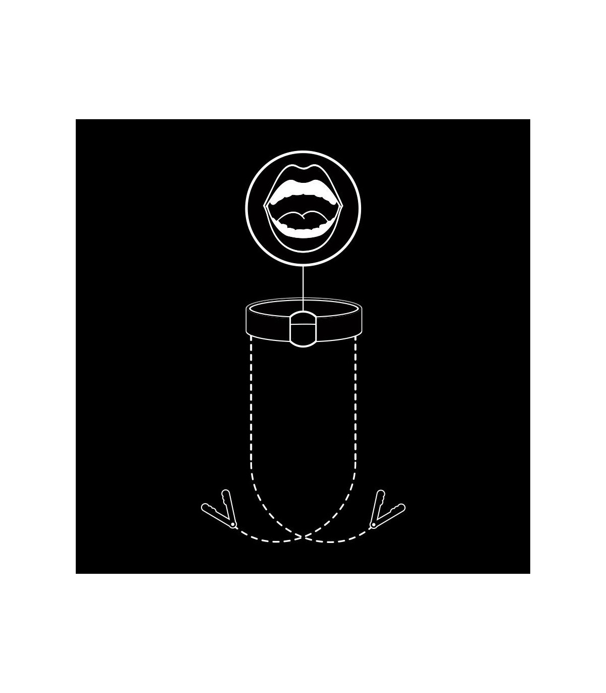 La mordaza cuenta con una resistente anilla para así tener a tu sujeto, bien sujeto. Las pinzas en los pezones están conectados al collar con cadenas de metal.