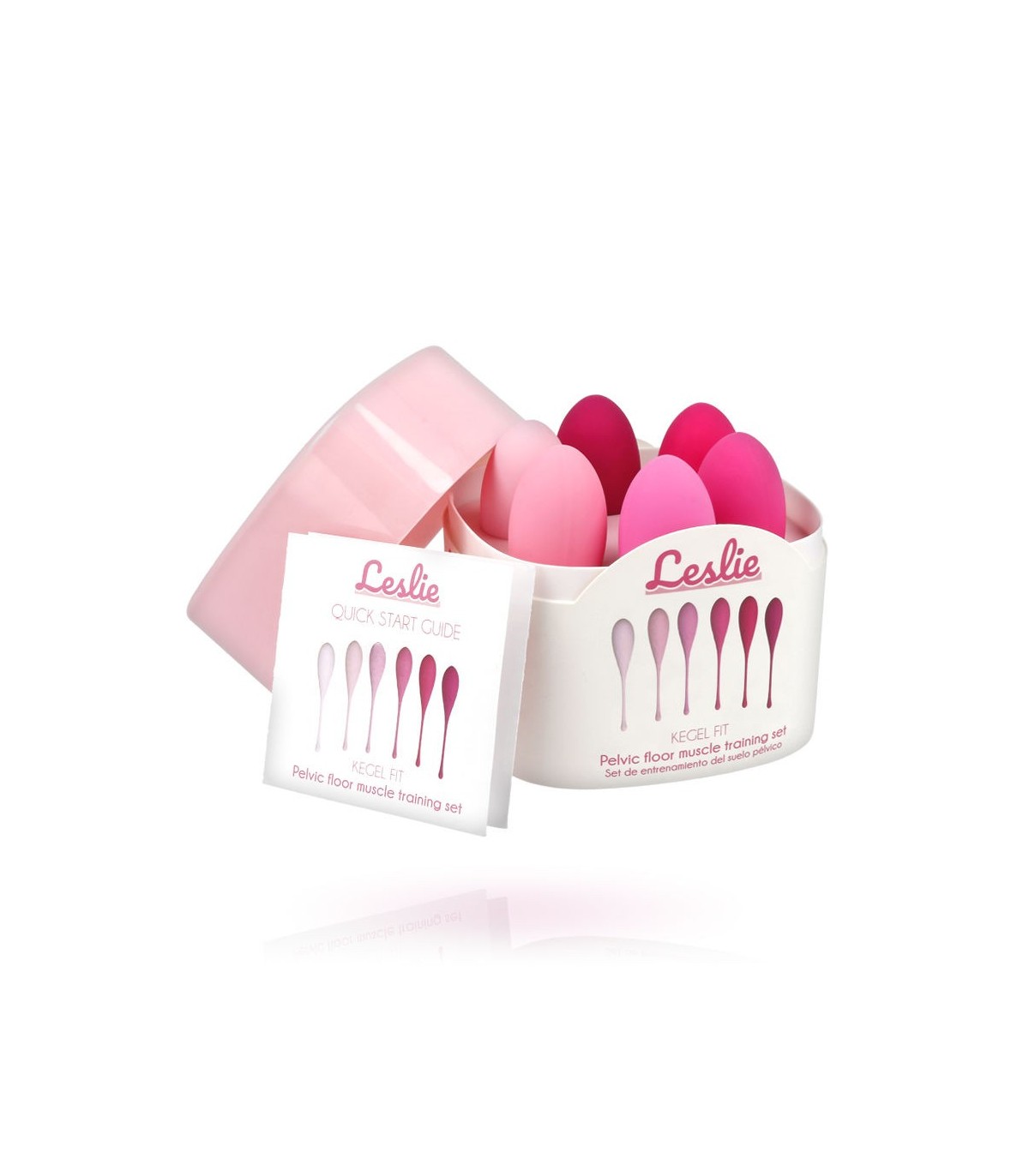 Este entrenador vaginal de los musculos del suelo pelvico puede ser usado por mujeres que se inician o mujeres en nivel avanzado porque Leslie tiene todos los pesos disponibles.
