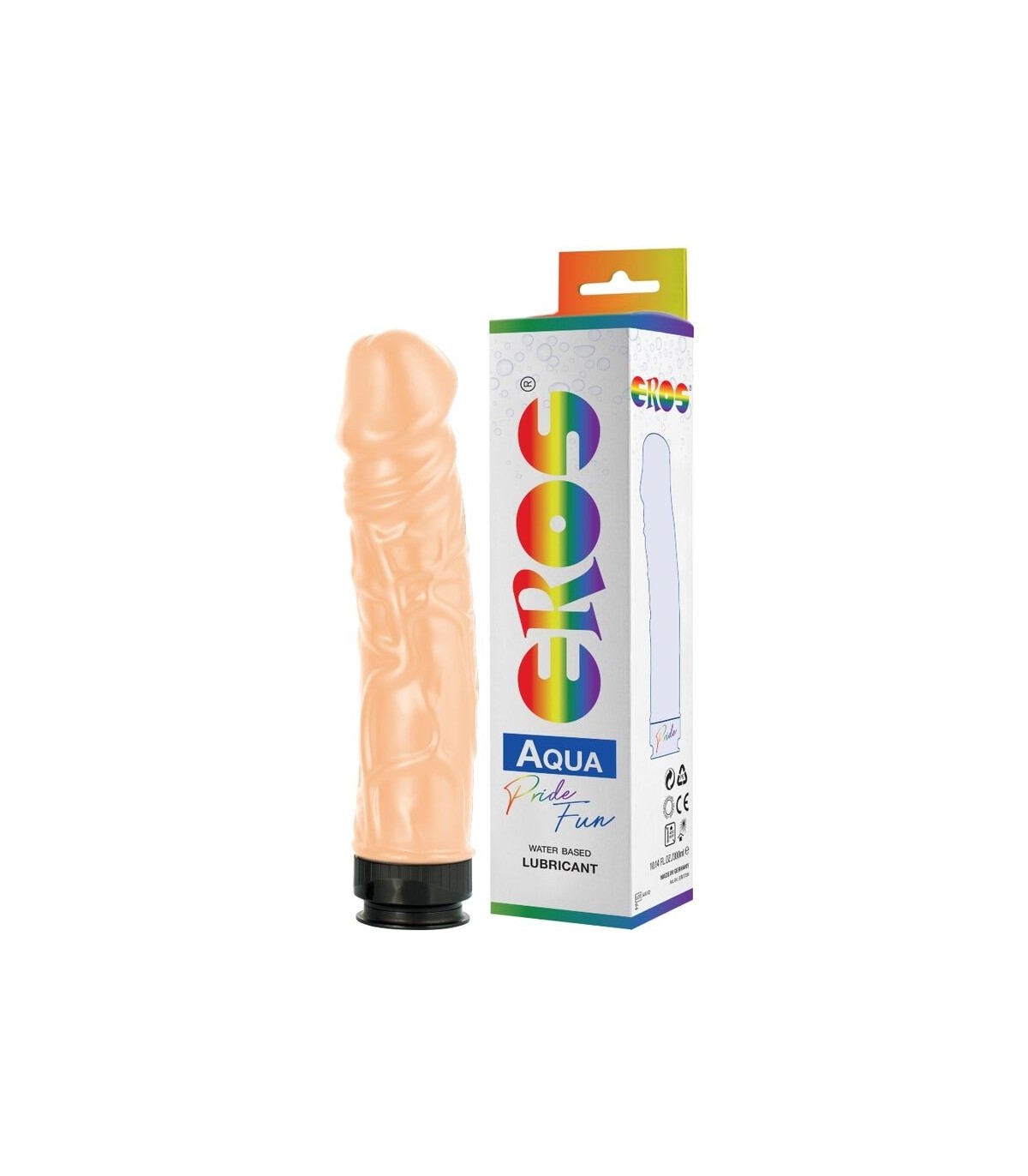 ¡Esto si que es un dos en uno!. Este dildo realístico rígido, además de tener todo lujo de detalles, guarda en su interior 300 ml de lubricante base agua Eros Aquaglide. Todo lo que necesitas al alcance de tu mano