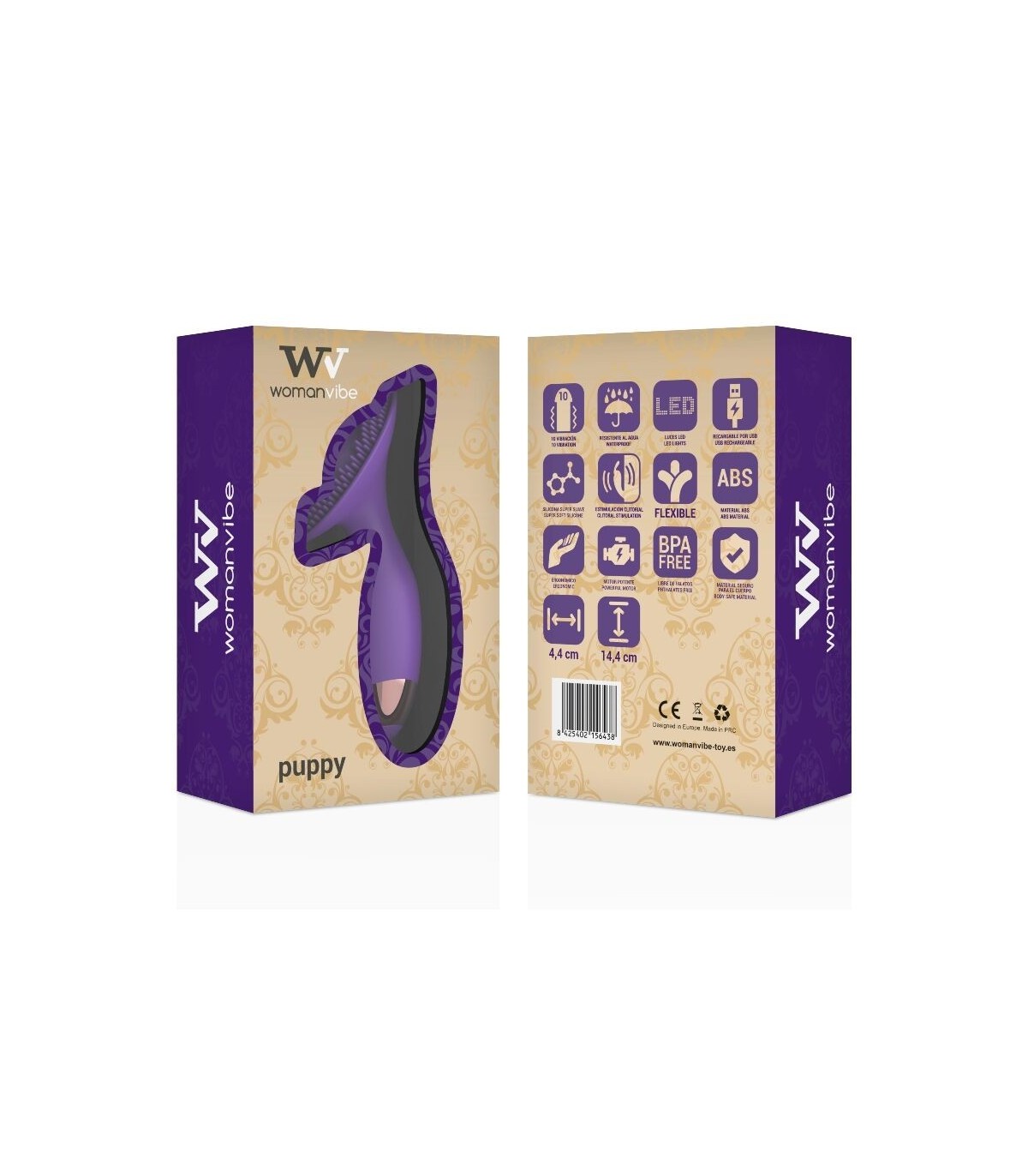 ¡Womanvibe presenta a Puppy!¿Necesitas un pequeño empujón para aliviar la tensión? ¡No busques más, porque este pequeño dispositivo será la solución para ti! ¡Fabricado de silicón además ABS, y recargador USB, el vibrador coqueto para el clítoris siempre cumple! ¡Una almohadilla, con forma de girasol, con 10 velocidades de vibración, este juguete llegará hasta una velocidad impresionante de 7500 rpm, para asegurarse de que la satisfacción esté garantizada! ¡El ultra mínimo ruido, de menos de 50 dB y su diseño ergonómico, hace que este juguete sea muy discreto y agradable a la vista!