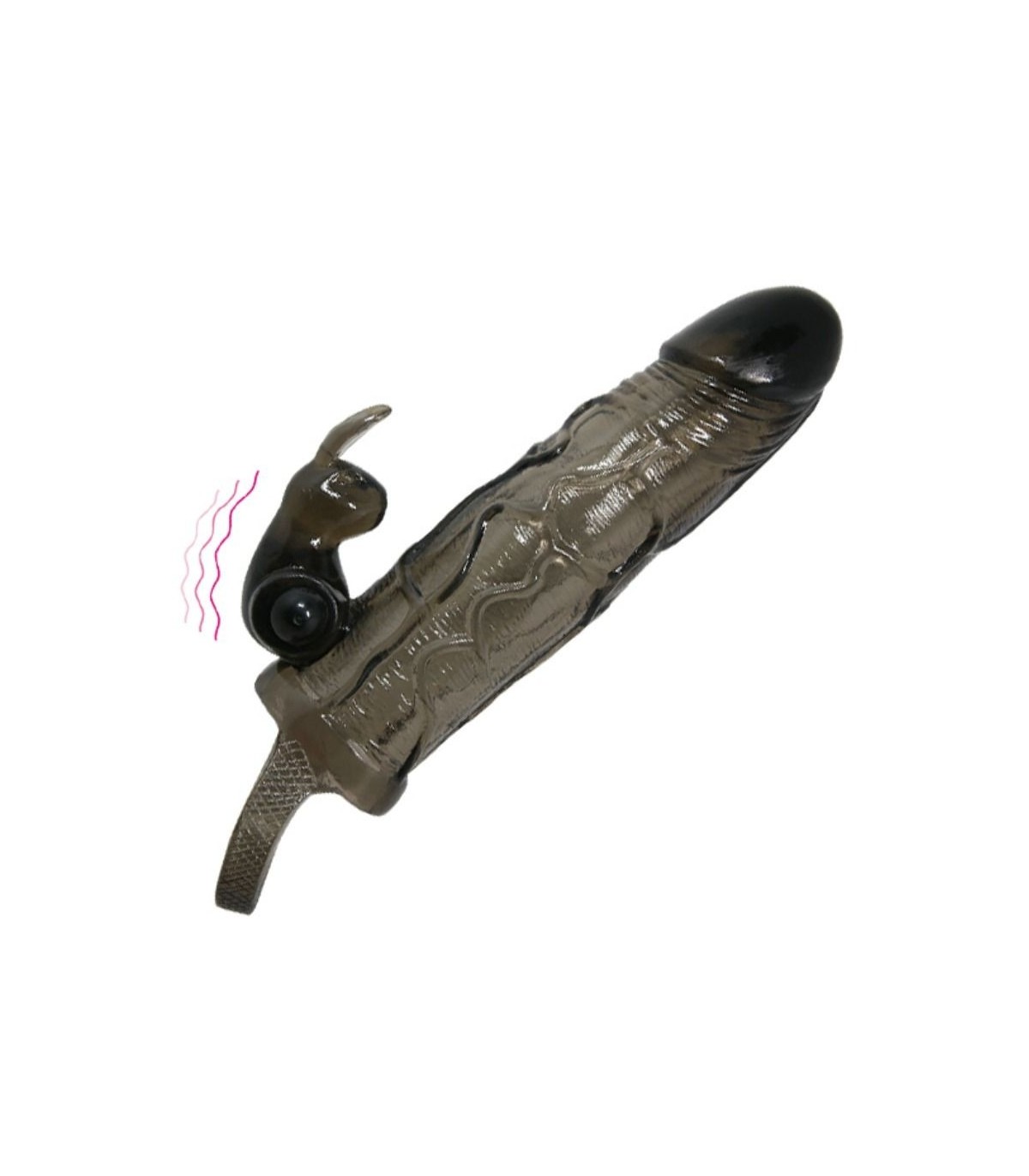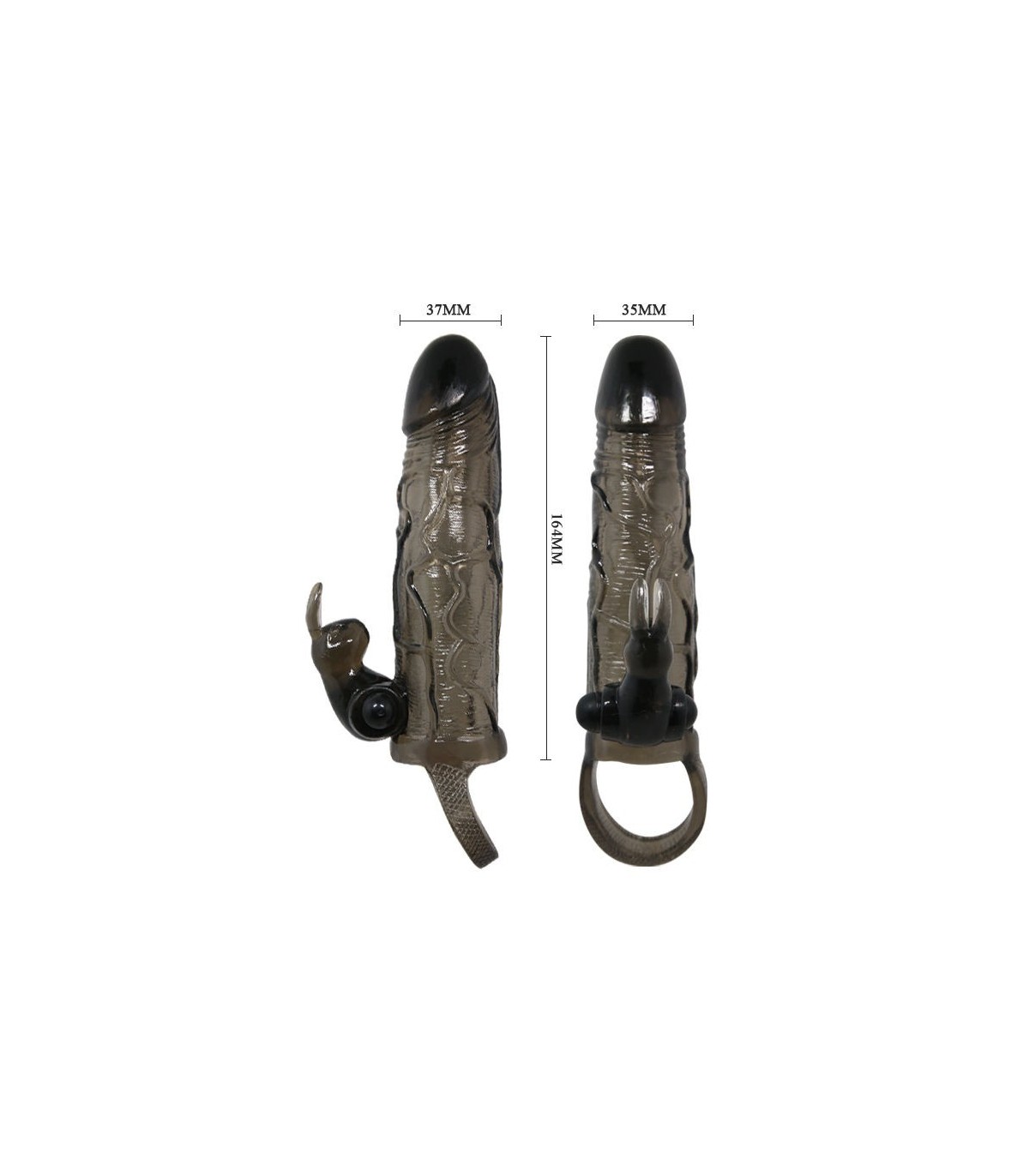BAILE - BRAVE MAN PENIS COVER WITH RABBIT BLACK 16.5 CM
