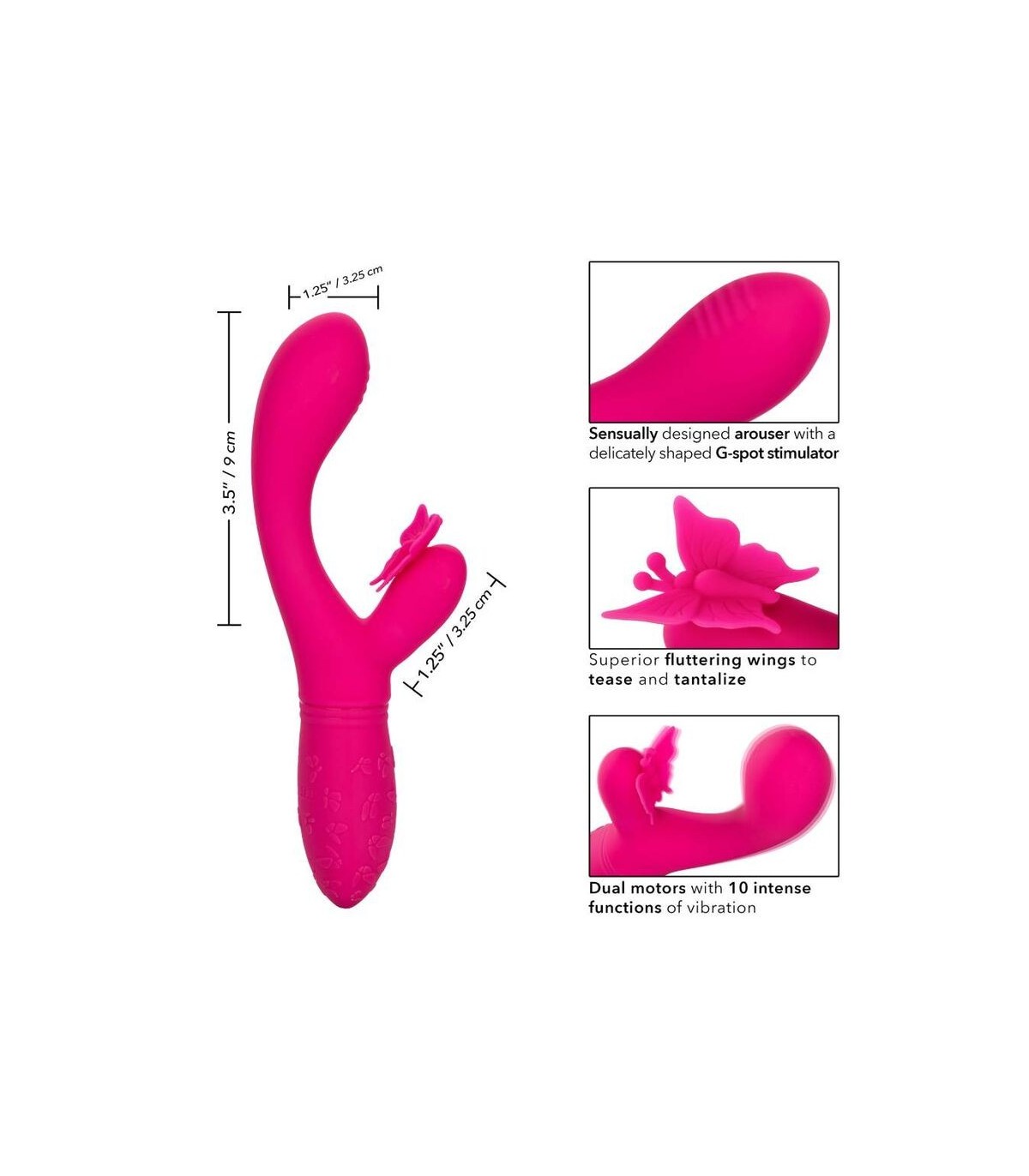 Diseñado para un placer íntimo, el beso de mariposa recargable es una caja de juguetes erótica imprescindible para cualquier amante del placer. Este masajeador sensualmente contorneado está aquí para cargar su placer con 10 funciones de vibración, potentes motores duales y teaser de mariposa revoloteando. La mariposa sonroja es una opción perfecta para principiantes y una opción sensual para los experimentados eróticamente. Disfrute de 10 funciones llenas de energía de vibración, pulsación y escalada con el control de botón. Los motores duales de alta intensidad sacan vibración que sacude la rodilla en cada centímetro de este apasionado vibrador. Las alas y las antenas de esta mariposa flexible aletan más rápido con cada cambio de vibración para cosquillas en las manchas dulces externos. Póngase juguetón con hasta 55 minutos de baja velocidad o 40 minutos de vibraciones de alta velocidad con el fácil control del botón táctil. Recarga su placer en solo 1,25 horas con el cable de carga USB proporcionado .