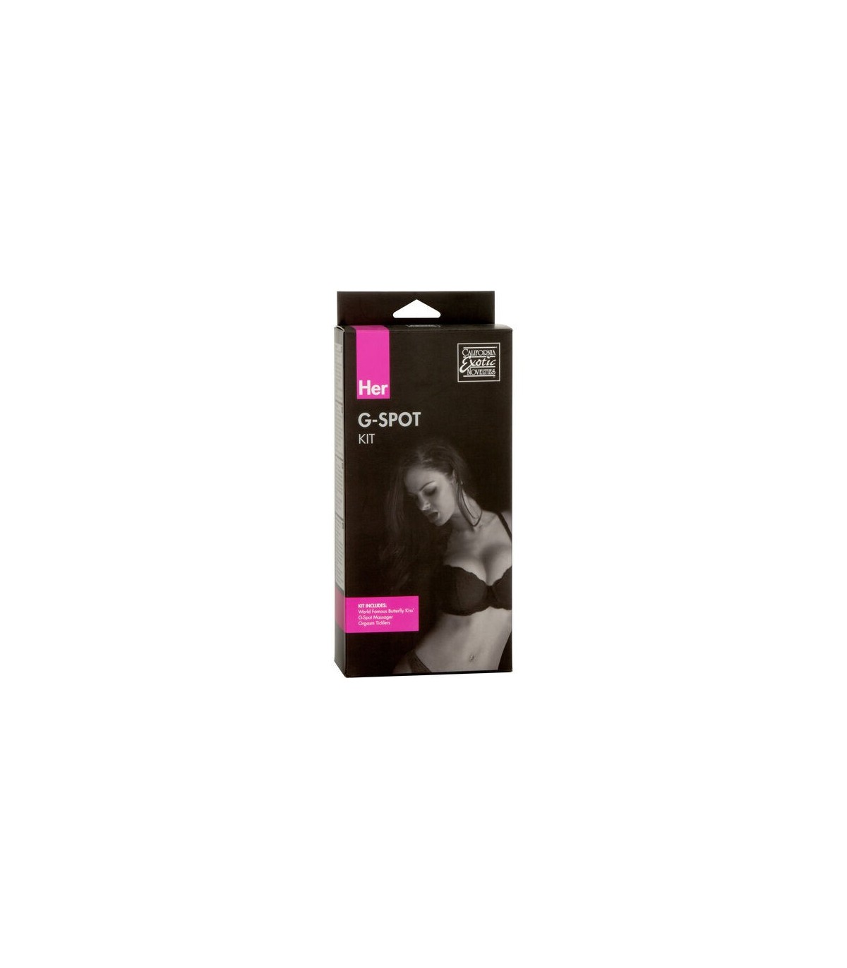 Incluye: tres fundas para masajeador, suaves, elásticas para la estimulación, un masajeador compacto perfectamente curvado para la estimulación del punto G, el famoso Butterfly Kiss con la punto del G y con las alas con 3 velocidadas distintas.