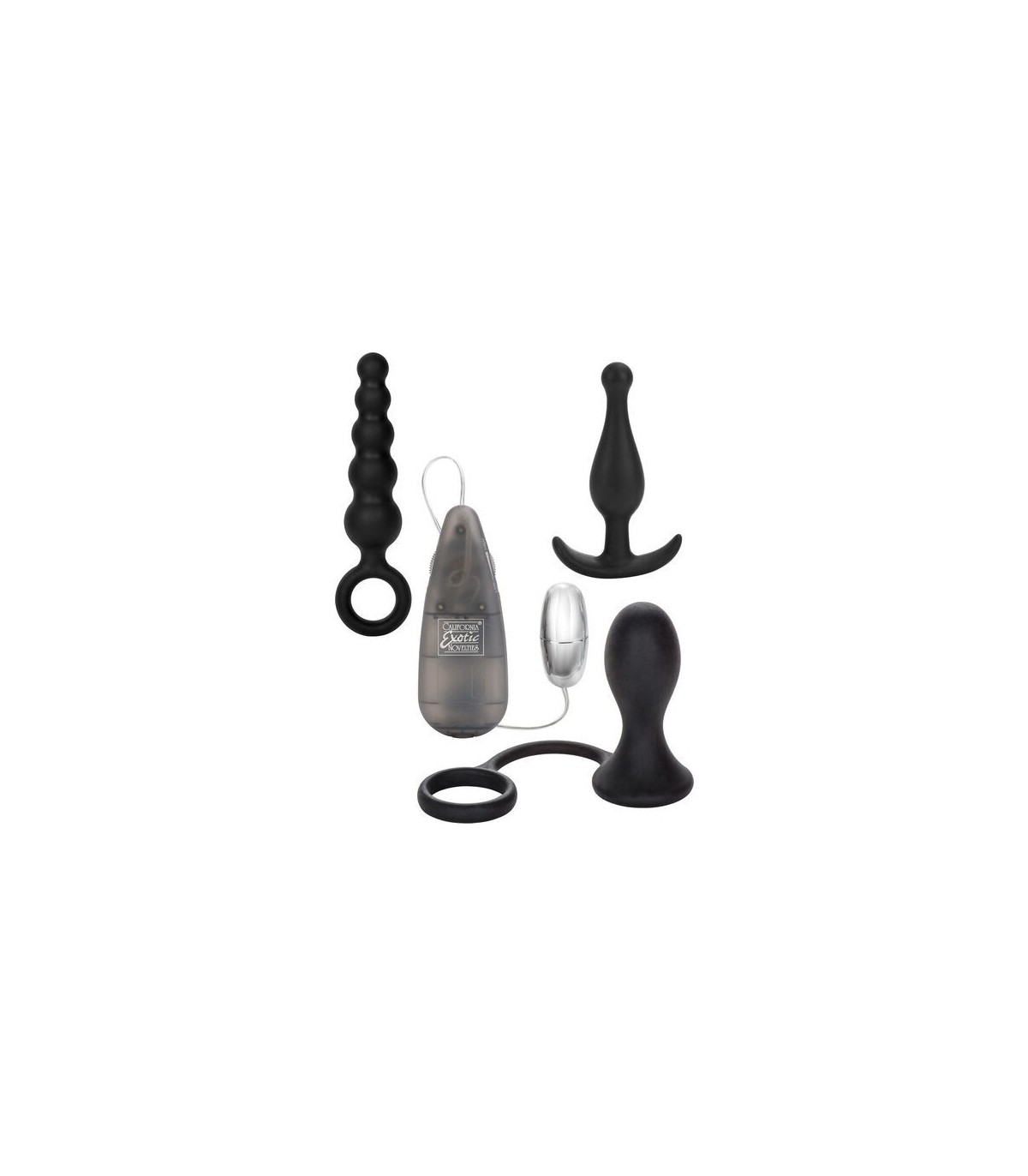Incluye: Dos plugs anales, un estimulador con distintas velocidades y una sonda de próstata de silicona con anillo de soporte para su fácil extracción.