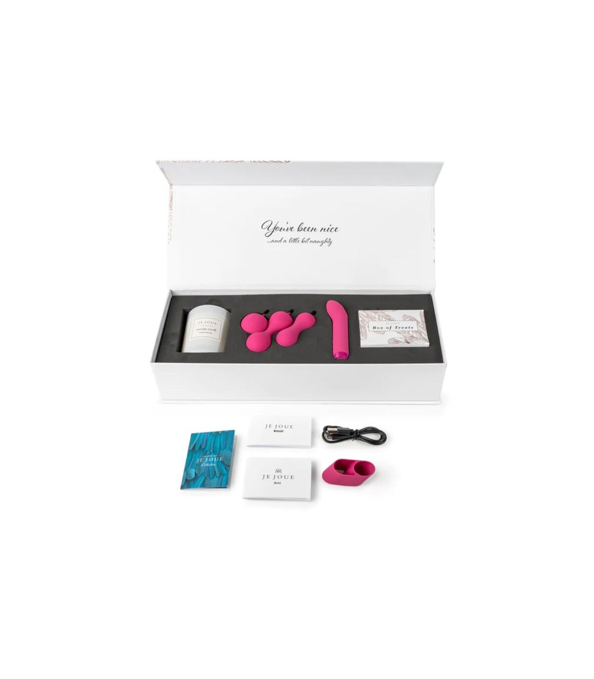 Bellamente empaquetada con el diseño de plumas de oro rosa de Je Joue, esta caja es más que un simple regalo, es un gesto de amor y una promesa de pasar más tiempo de calidad con la persona que amas. Mima a esa persona especial en tu vida con esta caja de regalo de bienestar sexual de edición limitada de Je Joue.