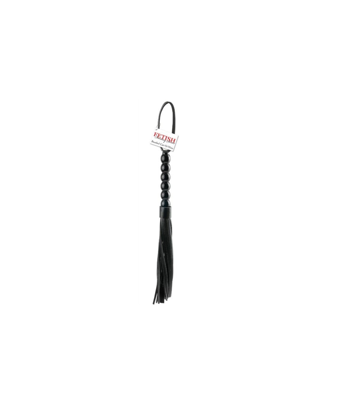 Látigo de 52 cm con mango de madera acanalado y correa para mayor agarre. Tiene varias trenzas fabricadas en vinillo y muy fáciles de limpiar .