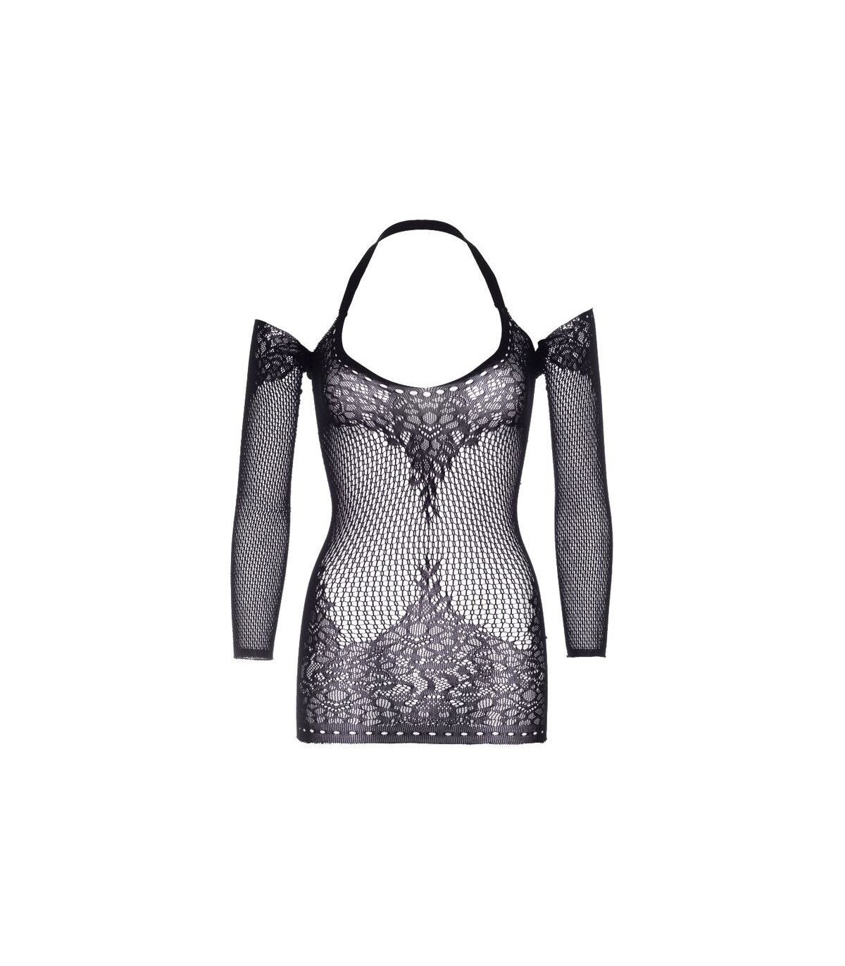 Minivestido de encaje y red sin costuras con mangas largas y cuello halter cruzado. Con Leg Avenue reforzarás tu feminidad y obtendrás ese toque justo de seducción, sensualidad y elegancia.
