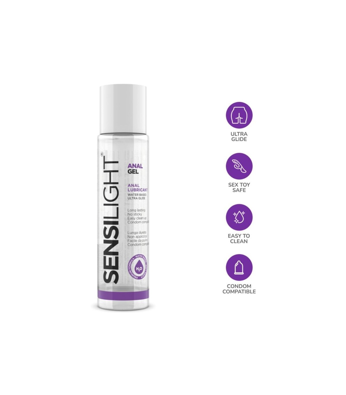Sensilight Analgel es un lubricante anal a base de agua para hombre y mujer, específico para la hidratación y la lubricación genital antes del coito íntimo. No contiene grasa. Gracias a su fórmula exclusiva rica en elementos activos naturales de alta calidad, Sensilight Analgel previene las molestias, ardor e irritación típicas de las áreas íntimas sujetas a estimulación prolongada. Producto soluble en agua.