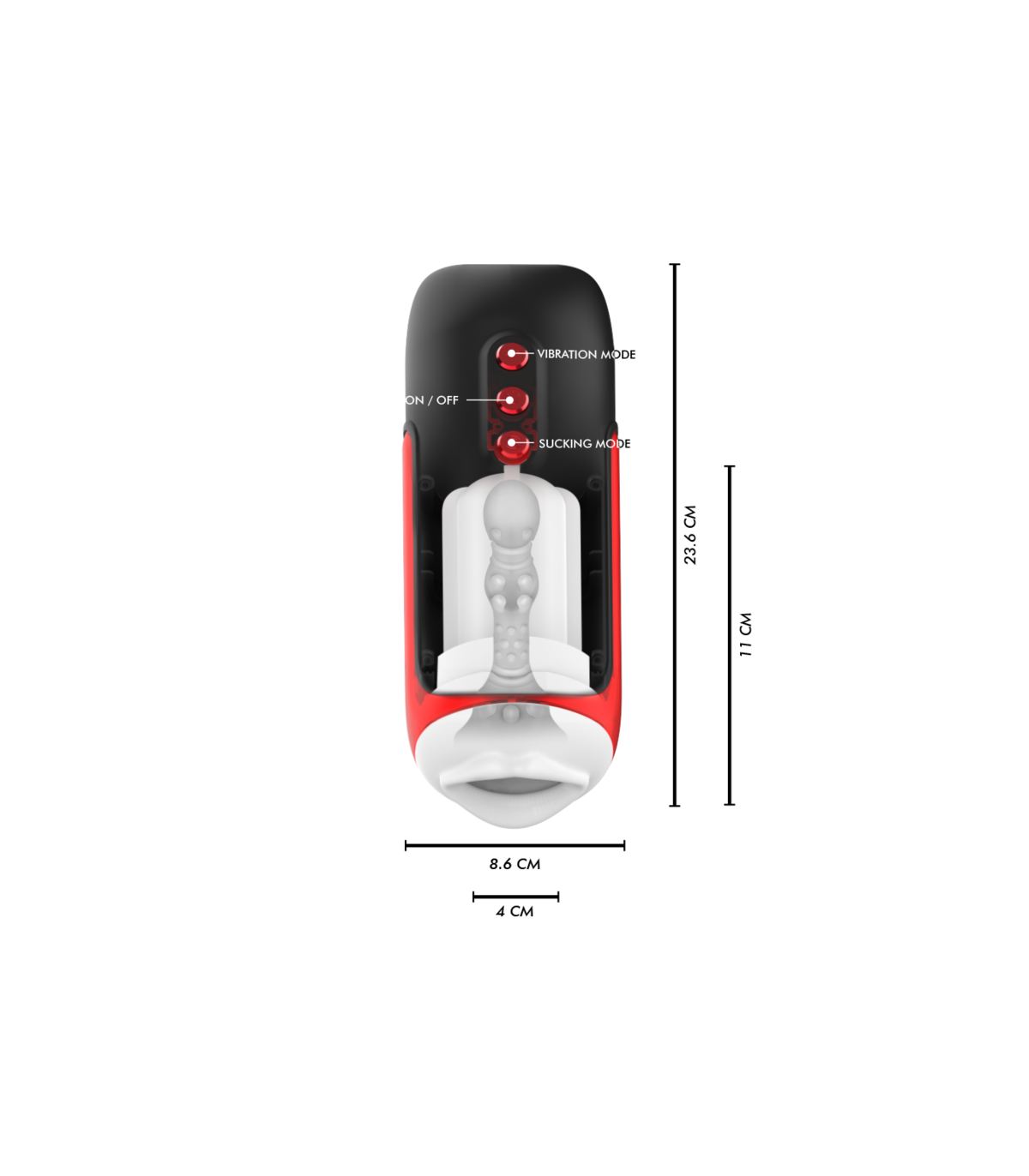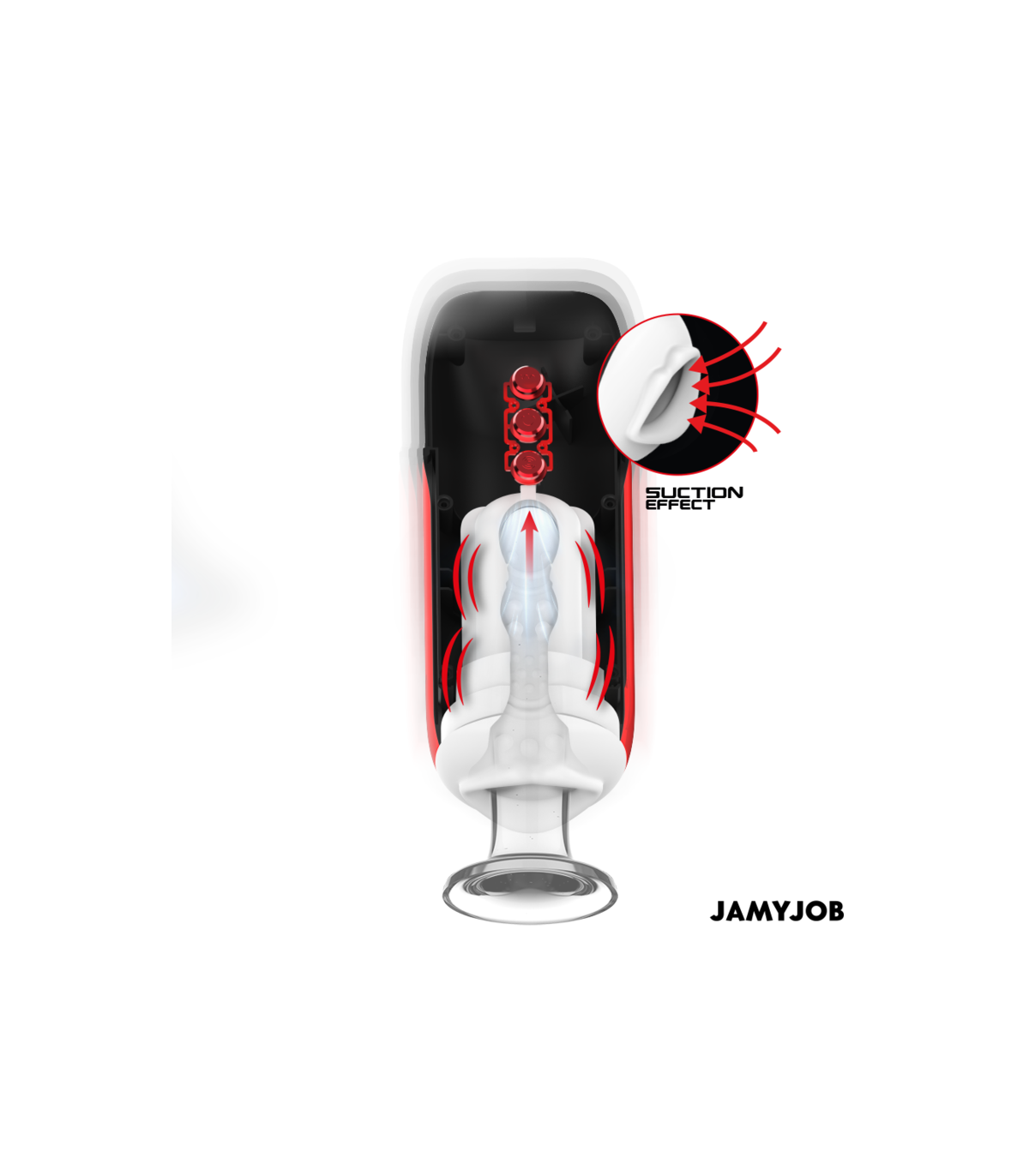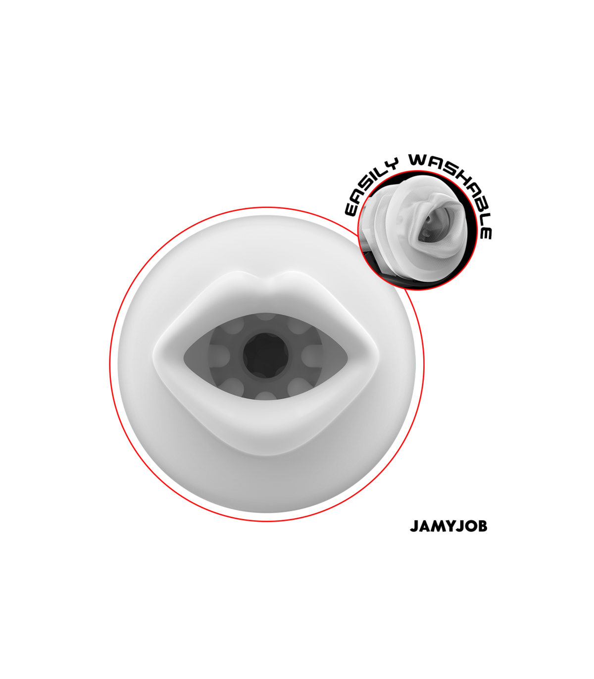 El masturbador automático con forma de boca para hombre BLAZE de la marca JAMYJOB es un dispositivo innovador y elegante, diseñado para proporcionar una experiencia estimulante y placentera de alta calidad. Con un diseño en color negro y rojo y detalles en rojo, este masturbador combina estética y funcionalidad en un solo producto.