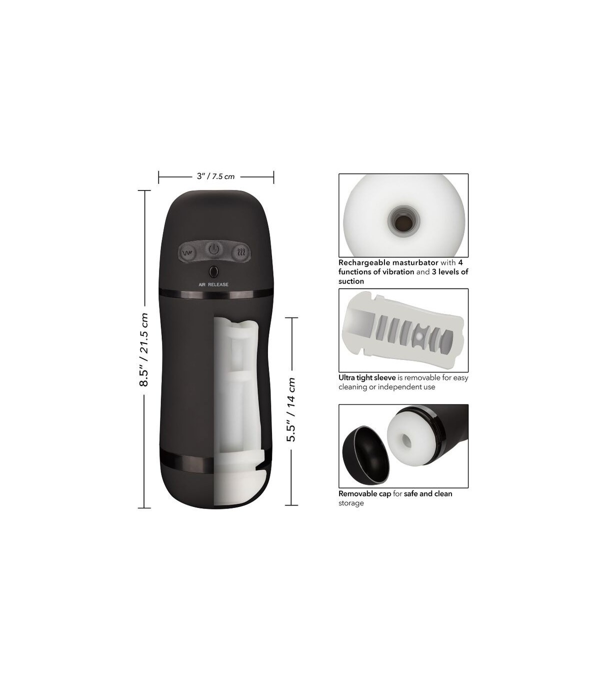 - Masturbador recargable totalmente autónomo con capacidad de vibración y succión