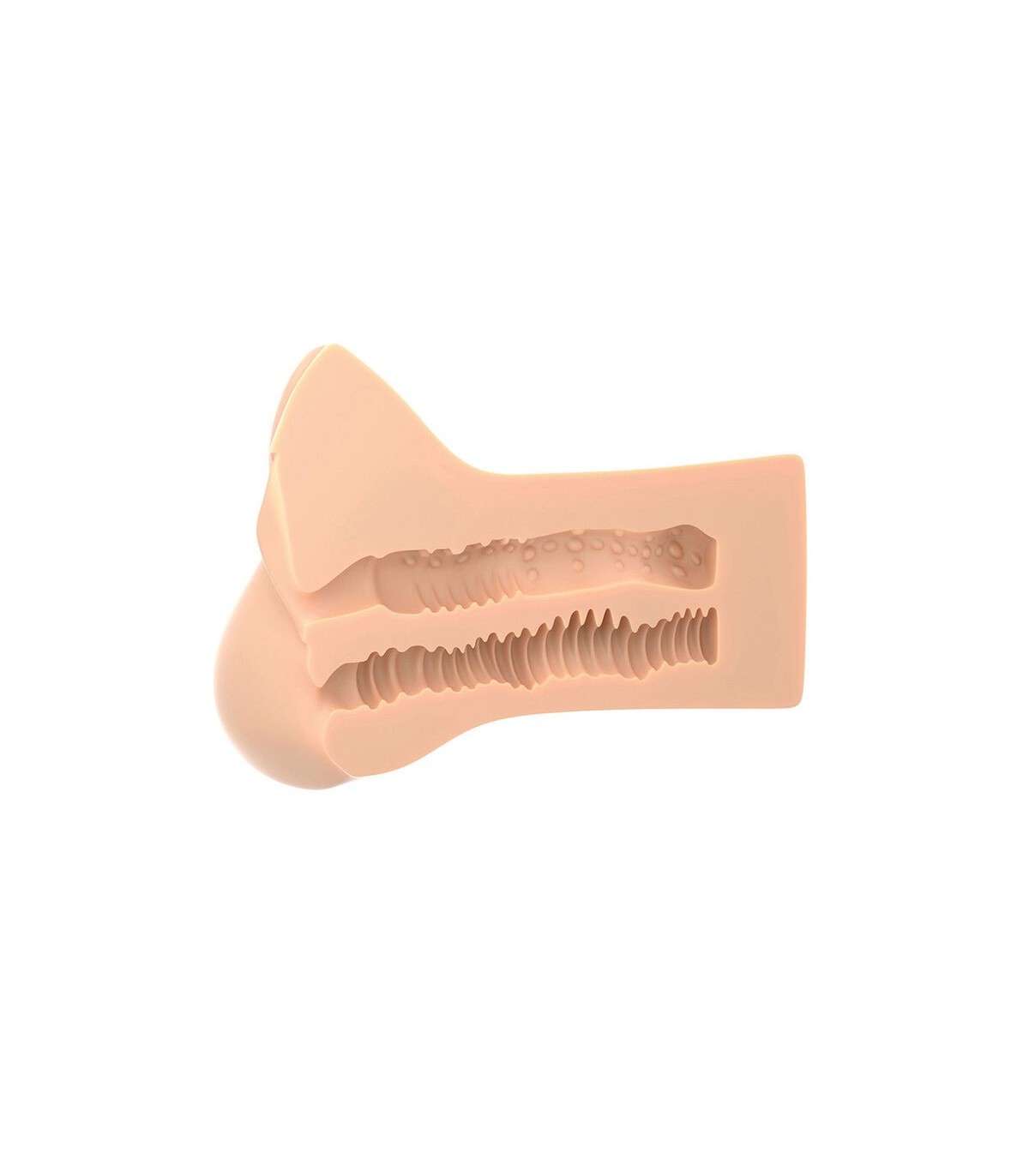 ¡Este masivo estimulador cuenta con una textura de piel súper detallada y dos agujeros diferentes para la penetración.