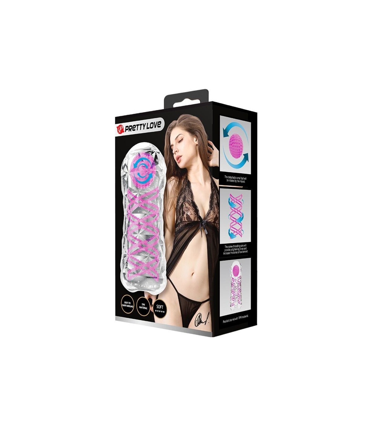 Este masturbador transparente y reutilizable tiene una espiral giratoria y una bola de estimulación en el lateral, la espiral giratoria hace que el masturbador gire durante la penetración y la bola en la parte superior puede estimular el punto correcto y brindarte una nueva sensación.