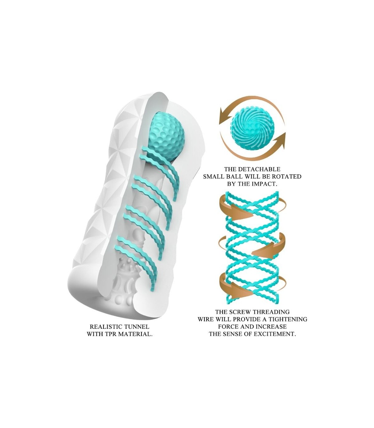 ¡Pequeña herramienta para una gigantesca diversión de masturbación! Este masturbador transparente y reutilizable tiene una espiral giratoria y una bola de estimulación en el costado, la espiral giratoria hace que el masturbador gire durante la penetración y la bola en la parte superior puede estimular el punto correcto y brindarle una nueva sensación. La funda presenta una textura estimulante y excitante en su interior que masajea el pene de forma intensa y dinámica durante un trabajo manual. Puede utilizar este elegante masturbador agradable para la piel una y otra vez. ¡Muy fácil de usar y puro placer!