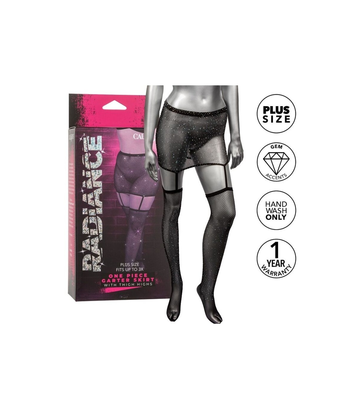 Presentamos la impresionante Falda de Una Pieza con Ligas Radiance de Talla Grande y Medias hasta el Muslo, diseñada para tallas de hasta 3X. Confeccionada con materiales suaves y elásticos, halaga las curvas mientras garantiza la comodidad.