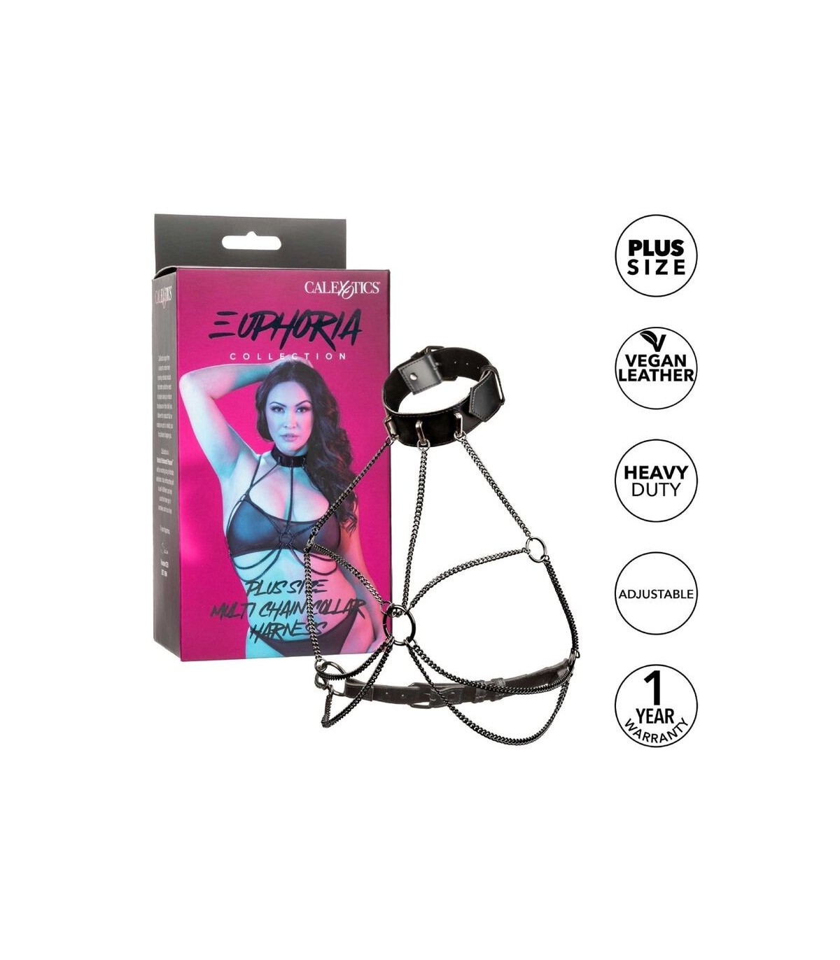 Abraza con confianza tus curvas con el Arnés Collar Multi Chain en Talla Plus de la Colección Euphoria. Diseñado a medida para un ajuste seguro y cómodo. El diseño con múltiples cadenas y el robusto collar añaden atractivo a tu conjunto, ideal para explorar fantasías salvajes. El cierre seguro con hebilla garantiza un ajuste fácil, adaptándose a tu comodidad. Fabricado para la durabilidad, el diseño contemporáneo presenta un interior de terciopelo suave y un lujoso exterior de cuero vegano. El acolchado doble y las costuras ofrecen tanto comodidad como confiabilidad, mientras que los acentos metálicos que no se empañan añaden un toque elegante. Experimenta la combinación perfecta de comodidad, estilo y sensualidad con el Arnés Collar Multi Chain en Talla Plus de la Colección Euphoria.