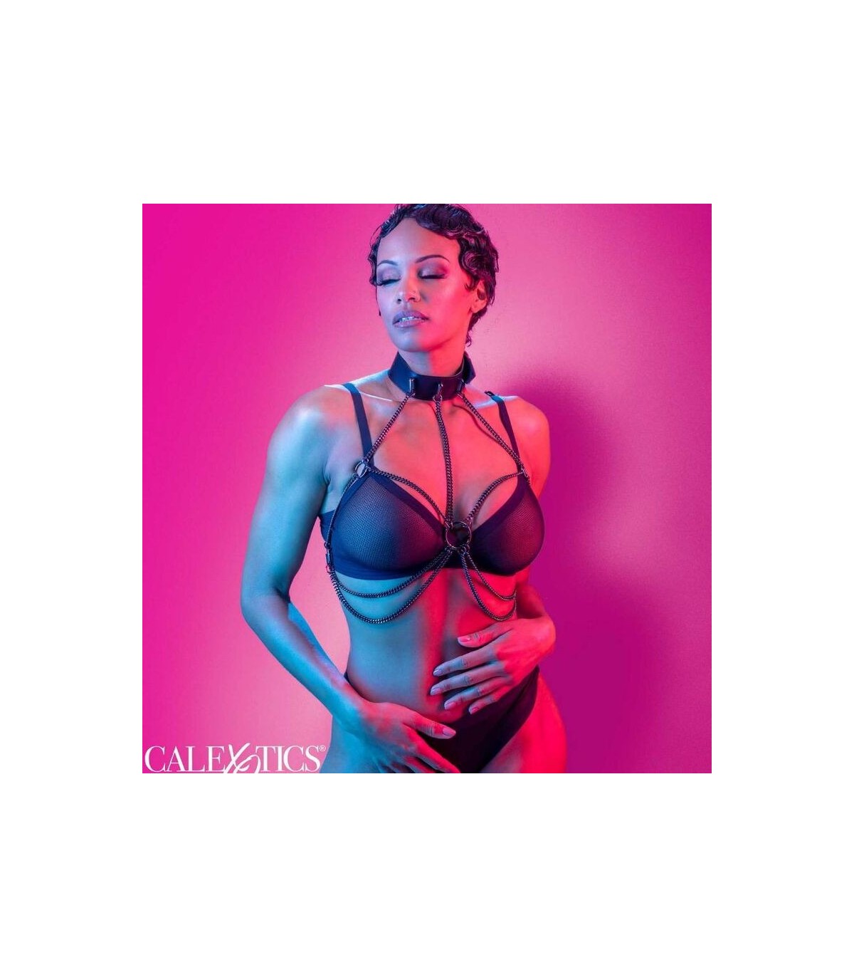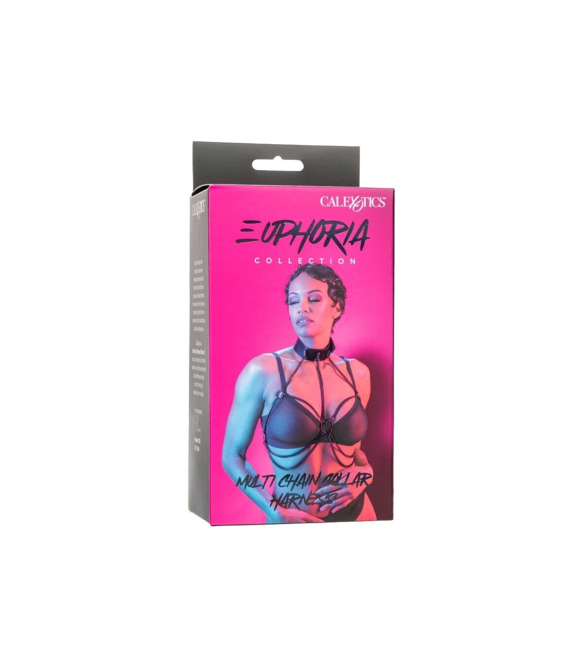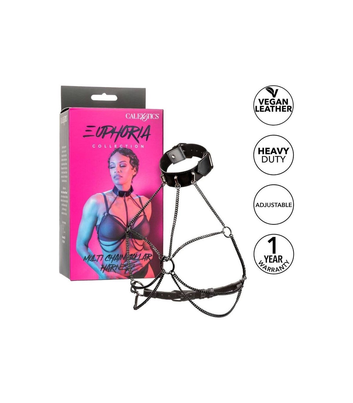 Experimenta el deseo desenfrenado con el Arnés Collar Multi Chain de la Colección Euphoria. El cautivador diseño con múltiples cadenas y el robusto collar garantizan un ajuste seguro y cómodo, ideal para darle sabor a momentos íntimos o agregar un toque único a tu look de festival. El arnés cuenta con un práctico cierre de hebilla para ajustes fáciles, permitiendo un ajuste personalizado. Déjate llevar por la sensación lujosa del suave interior de terciopelo, mientras que el exterior de cuero vegano añade sofisticación. Los acentos metálicos que no se empañan elevan la estética, diseñados para adaptarse a la mayoría de los tamaños estándar, abrazando tu cuerpo con confianza y sensualidad. Experimenta la fusión de fetichismo y moda con el Arnés Collar Multi Chain de la Colección Euphoria.