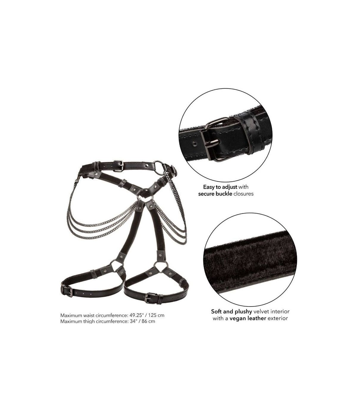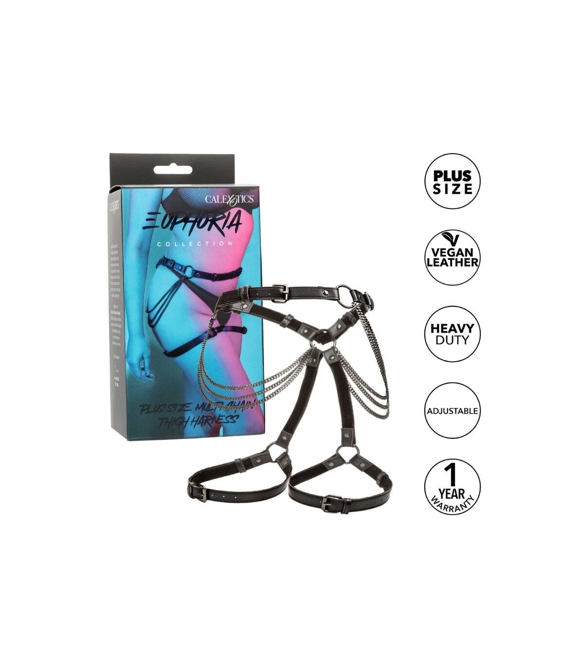 Realza tus curvas con el Arnés de Muslo Multi Chain Plus Size de la Colección Euphoria. Este accesorio premium, diseñado para la comodidad de tallas grandes, añade sensualidad a momentos íntimos o atuendos de festival. Con correas ajustables a la cintura y muslos con un cierre de hebilla seguro, asegura un ajuste personalizado. El diseño contemporáneo garantiza durabilidad para la indulgencia duradera en deseos. Disfruta del tacto lujoso del suave interior de terciopelo, complementado por un sofisticado exterior de cuero vegano. La construcción robusta con doble acolchado y costuras asegura durabilidad y comodidad, potenciando la exploración confiada. Mejorado con acentos metálicos que no se empañan, este arnés de muslo irradia una atractiva elegancia. Celebra tu sensualidad con la Colección Euphoria: potenciando curvas para experiencias inolvidables.