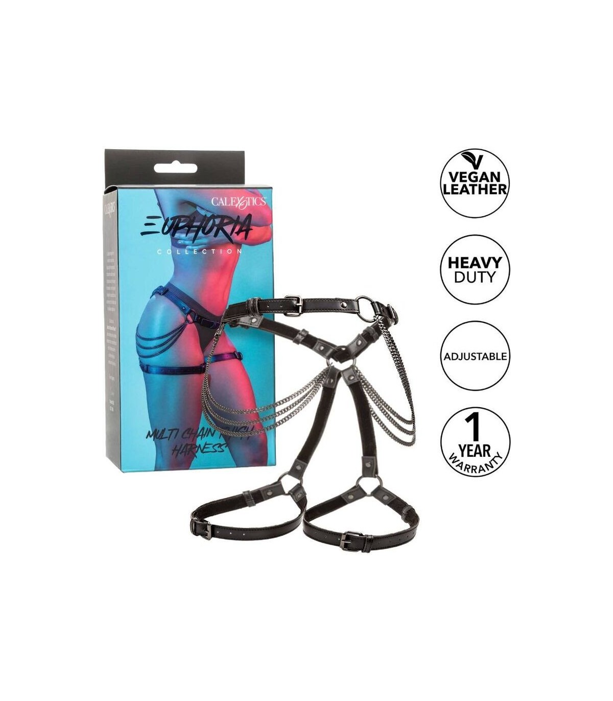 Eleva el placer con el Arnés de Muslo Multi Chain de la Colección Euphoria: un accesorio premium para deseos intensificados. Ideal para momentos íntimos o para agregar estilo festivalero, este arnés de muslo hace una declaración audaz. Las correas ajustables a la cintura y los muslos garantizan un ajuste cómodo con un cierre de hebilla. El diseño contemporáneo mejora la durabilidad y la satisfacción general. Disfruta de la sensación lujosa del suave interior de terciopelo y la sofisticación del exterior de cuero vegano. La construcción robusta, con doble acolchado y costuras, asegura comodidad durante encuentros apasionados. Los acentos metálicos que no se empañan añaden glamour, creando un atractivo visualmente impresionante. El diseño versátil se adapta a la mayoría de los tamaños. Desata tus deseos con el Arnés de Muslo Multi Chain de la Colección Euphoria.