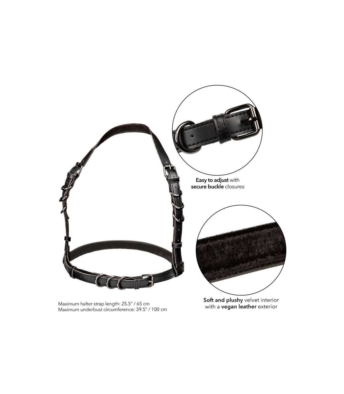 - Dimensiones del producto: 65 cm longitud máxima de la correa del halter y 100 cm circunferencia máxima debajo del busto