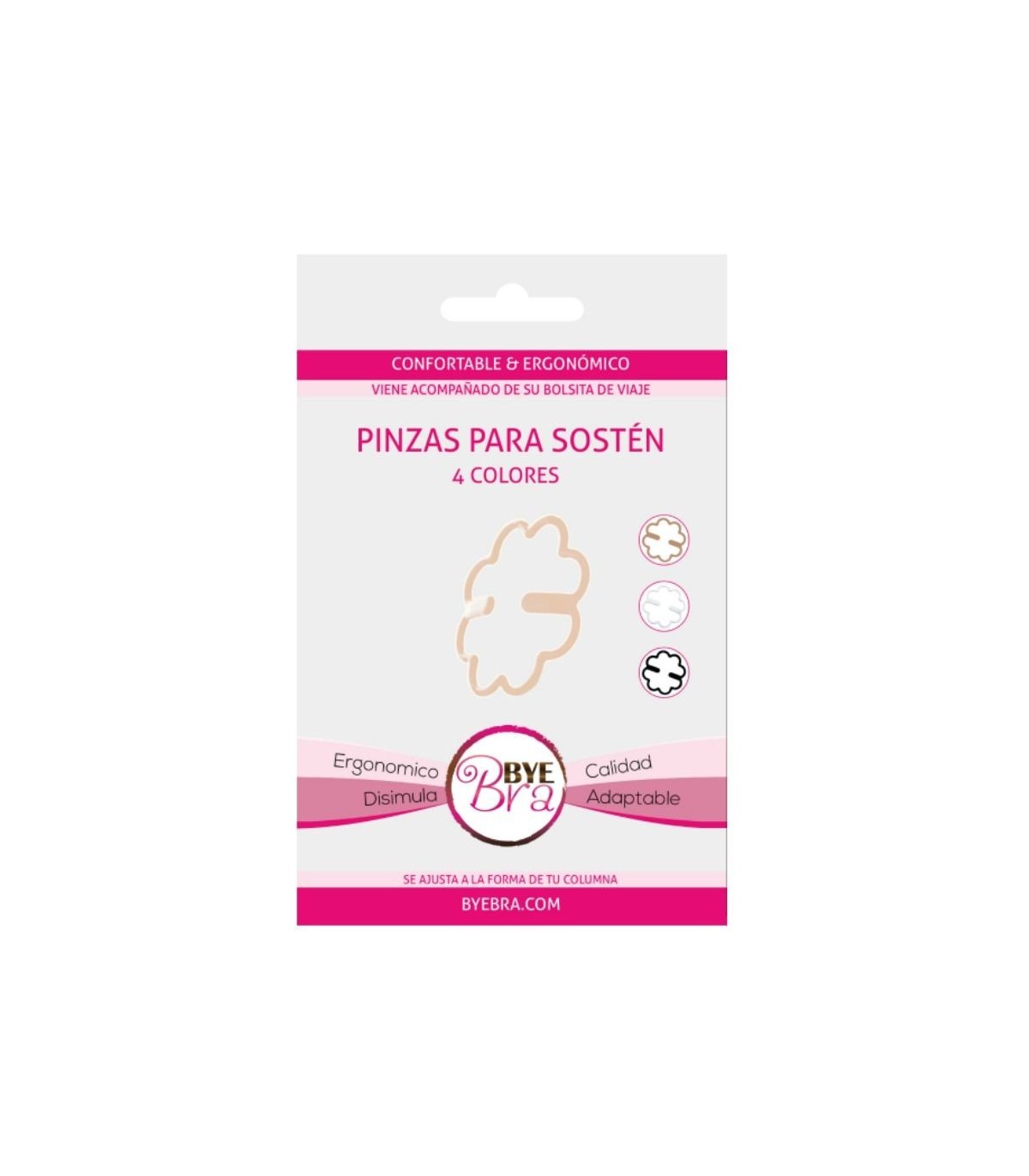 Introduciendo una nueva generación de pinzas para sostenes, Bye Bra eleva los accesorios tradicionales hacia otro nivel. La pinza de Bye Bra es ergonómica y plegable. Puede estirarse y plegarse para adaptarse a la forma de la espalda si necesario. Esconder tirantes de sostenes será mucho mas fácil y comodo como la pinza Bye Bra se adapta a la morfología del usario y casi no se siente. Cada caja contiene cuatro pinzas, cada una de diferente color.