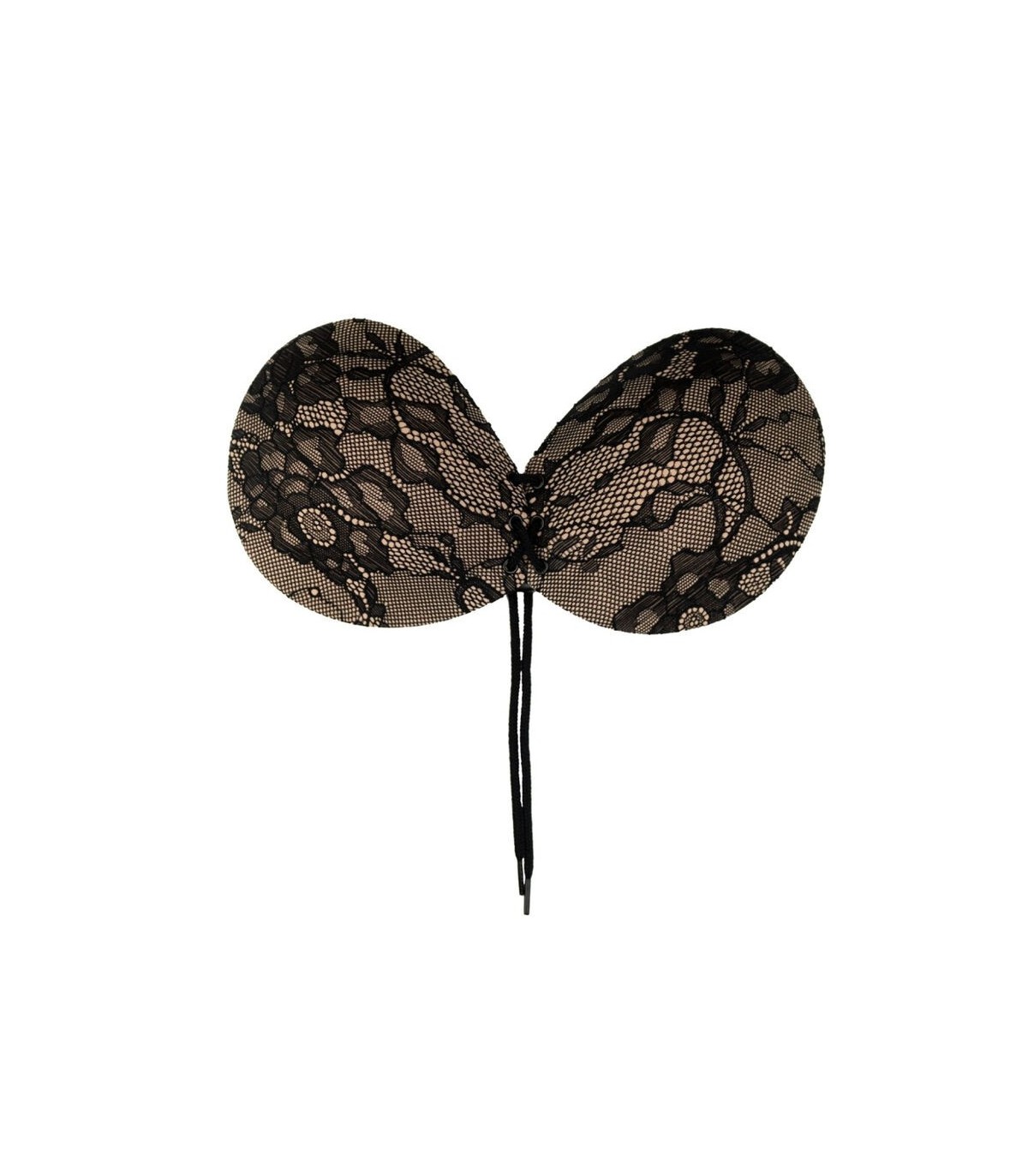 Despeja tu piel de cualquier aceite y crema. Una vez hecho esto, seque la piel con una toalla. Afloje el cierre frontal del sujetador de encaje redondo y retire la película protectora. Después, coloca las tazas en tus pechos. Presione suavemente las tazas adhesivas sobre la piel para suavizar y garantizar un soporte óptimo. Tire hacia abajo en ambos cordones juntos mientras desliza el cierre delantero hacia arriba.