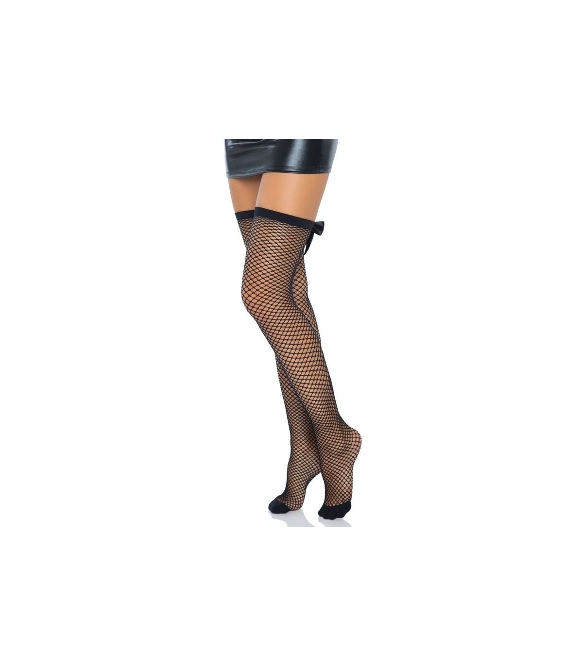 Medias de red con costura trasera decorada con strass y un lazo. Con Leg Avenue reforzarás tu feminidad y obtendrás ese toque justo de seducción, sensualidad y elegancia.