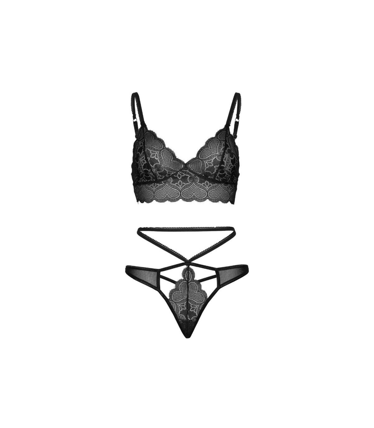 2 Pzs Bralette de encaje y tanga con recorte a juego fabricado por la prestigiosa marca de lencería Leg Avenue.