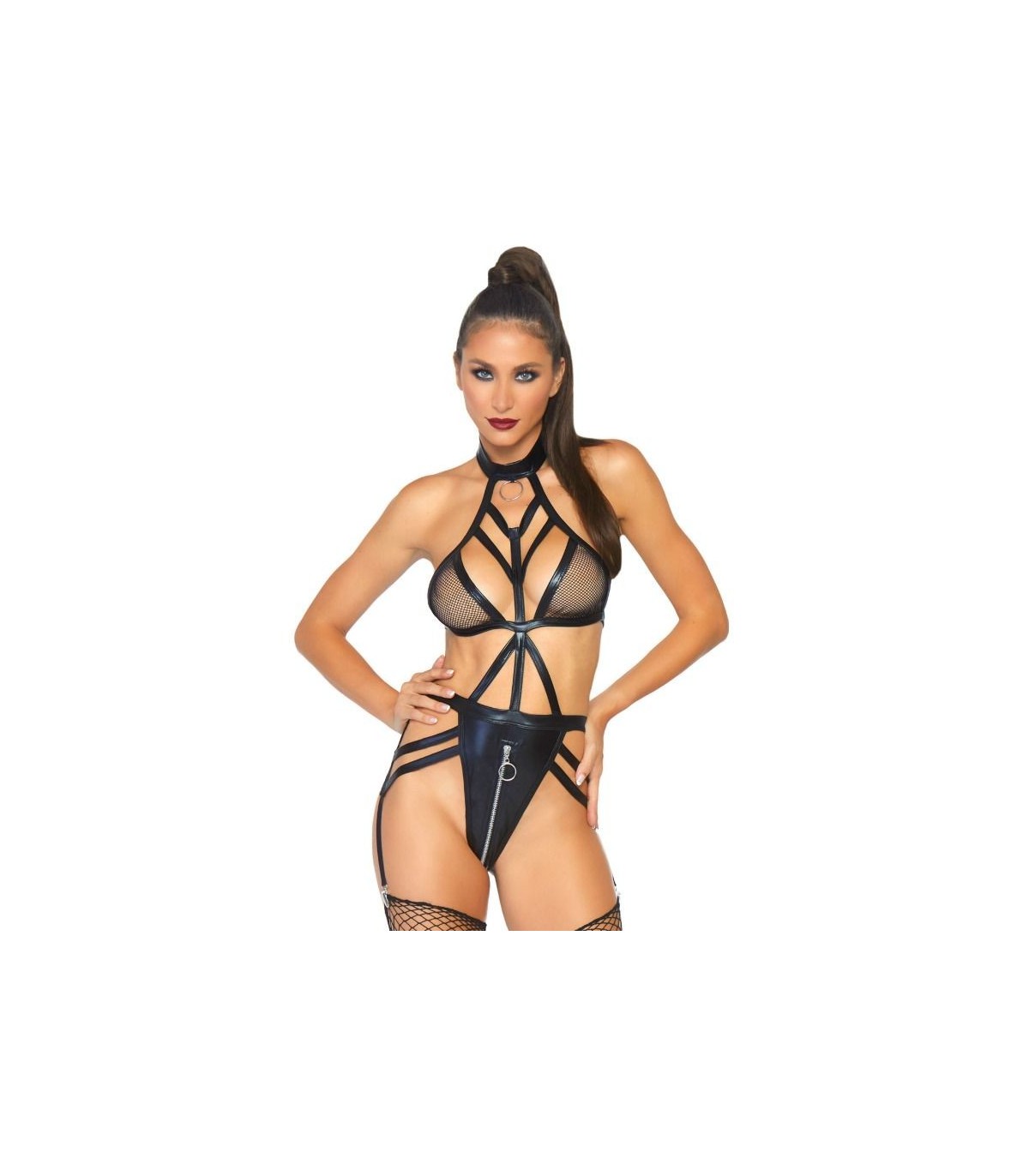 Body arnés wetlook con aro y cremallera en la entrepierna fabricado por la prestigiosa marca de lencería Leg Avenue. Con Leg Avenue reforzarás tu feminidad y obtendrás ese toque justo de seducción, sensualidad y elegancia.